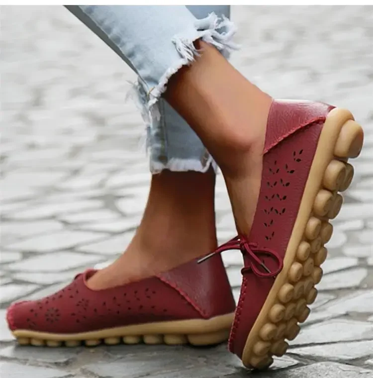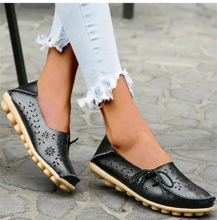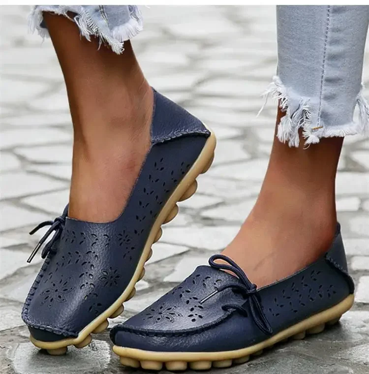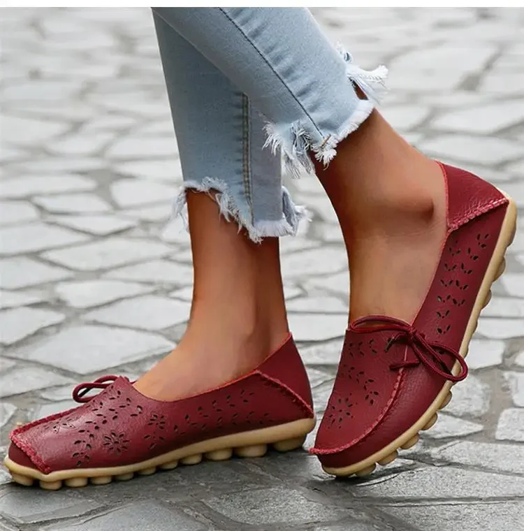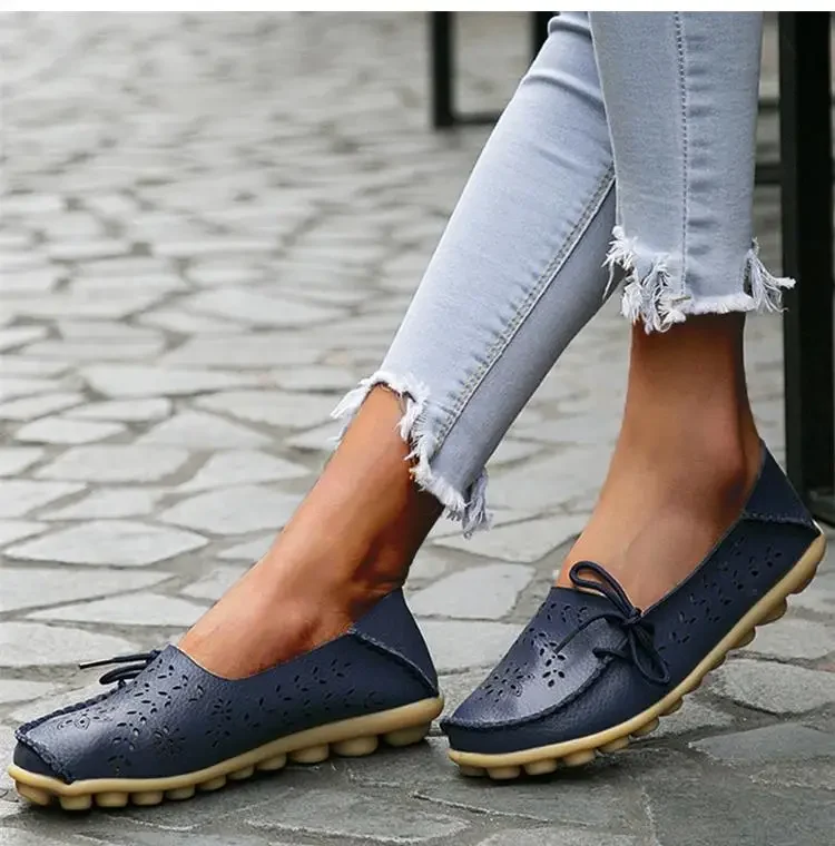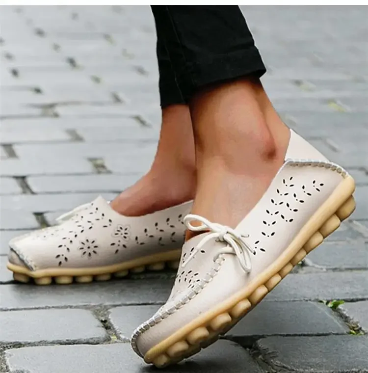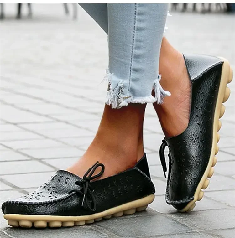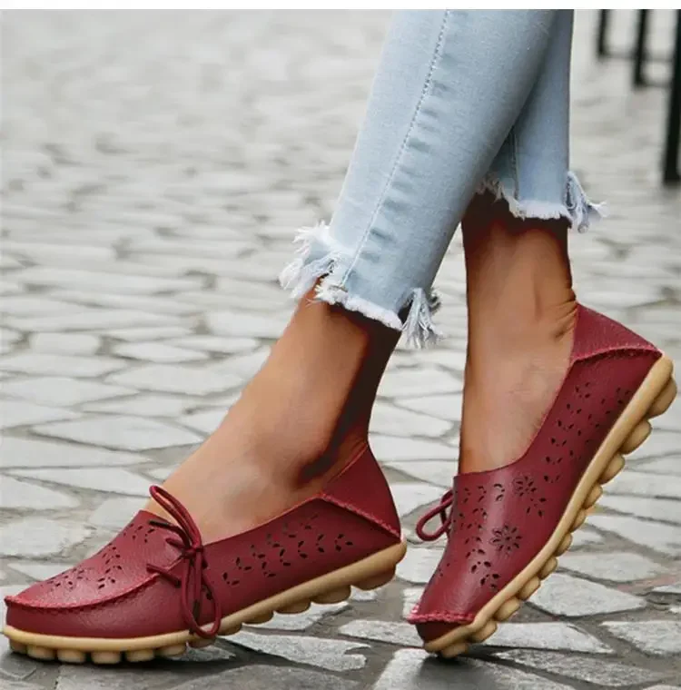 Genuine Leather Women Flats Fashion Casual Women Shoes Hollow Women's Shoes Slip On Flat Shoes Ballerina Plus Size Zapatos Mujer