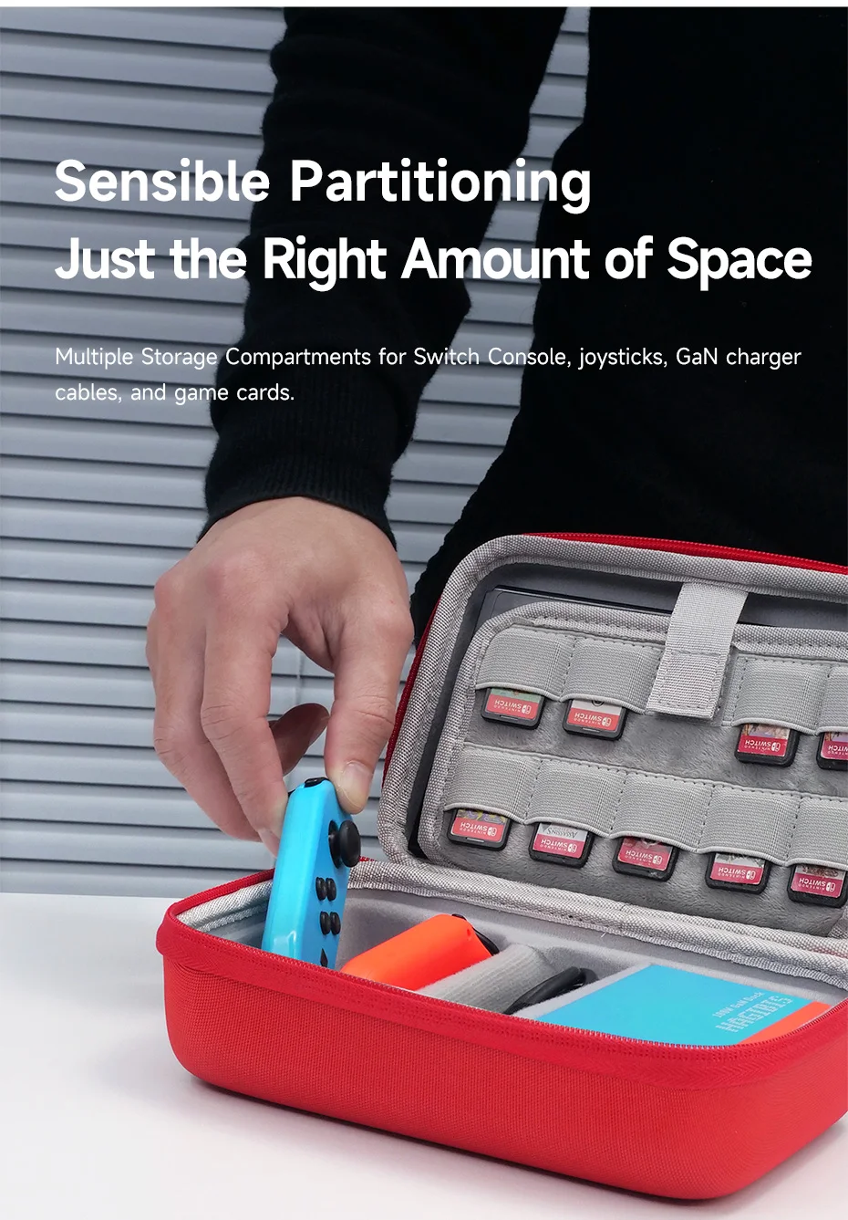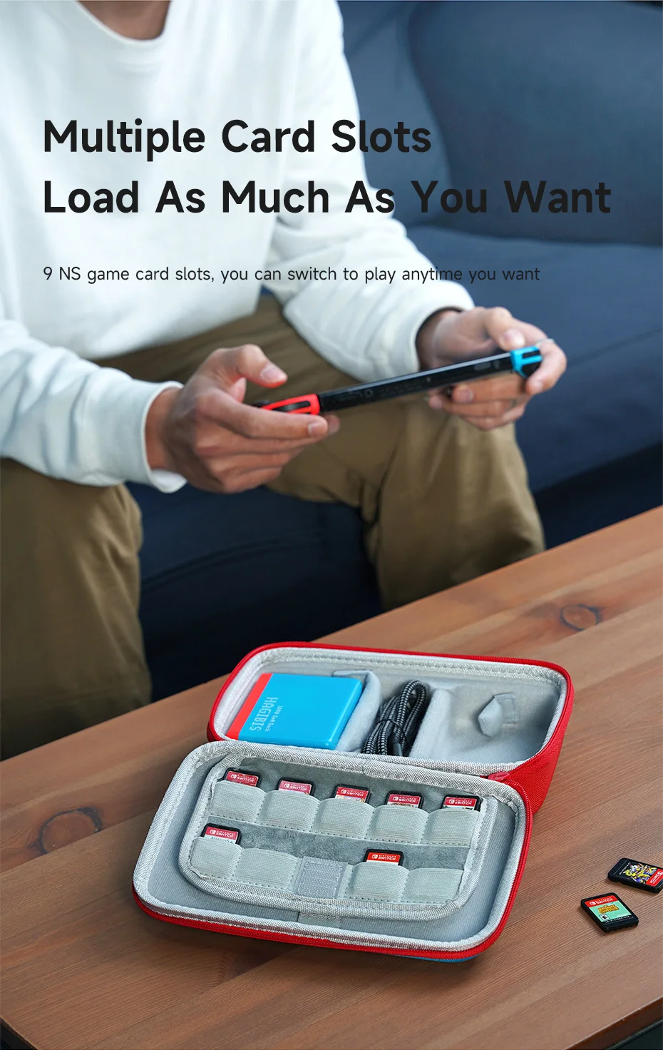 Plenty of Storage: Hagibis Nintendo Switch Case features secure storage for 9 Nintendo Switch games, at a glance, you can find the game you want to play next. Stow away your spare JoyCons, power bank, or charging cables inside the large elasticated pocket