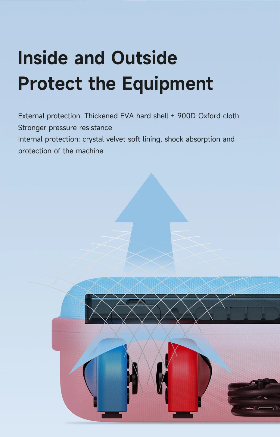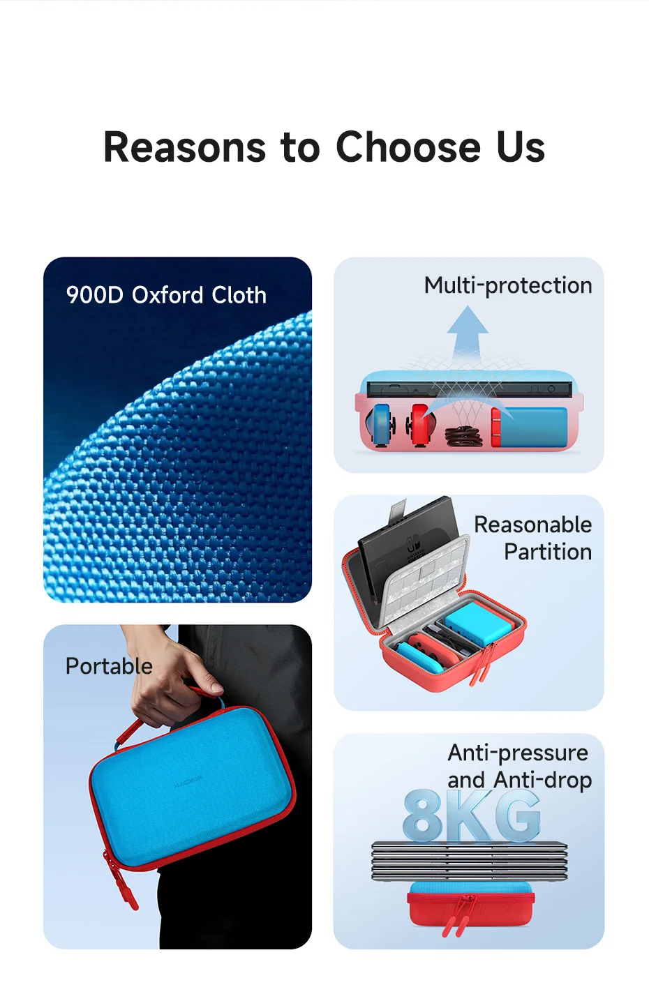 900D Oxford Cloth: Hagibis Switch Carrying Case uses 900D Oxford cloth shell, 900D density oxford fabric with higher strength and density. Tough texture, anti-scratch and wear-resistant