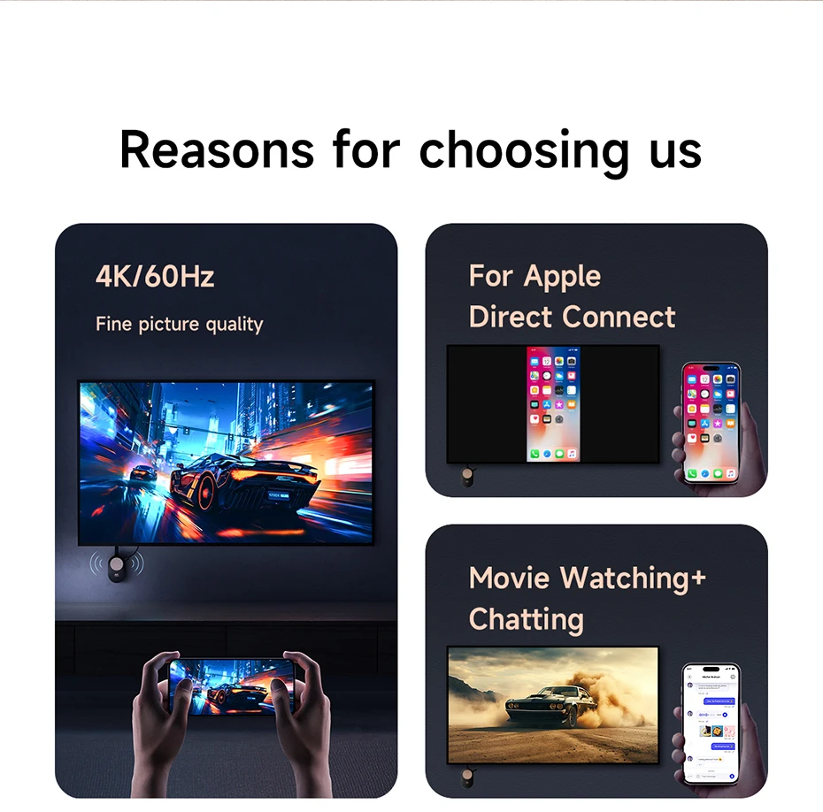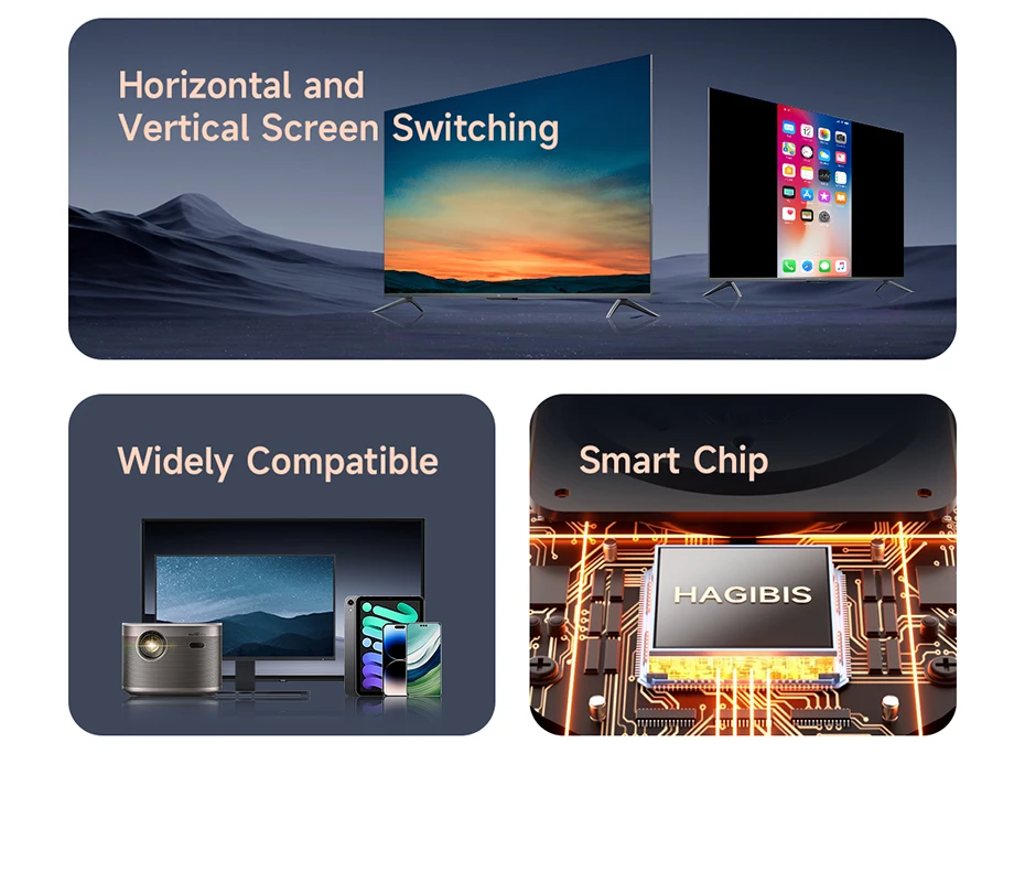 4K@60Hz Ultra Clear Experience: Hagibis Wireless HDMI-Compatible Display Dongle Adapter support 4K decoding, providing stunning 4K@60Hz high-definition output. Easily switch to a larger screen and enjoy high-quality audio and video content with friends and family