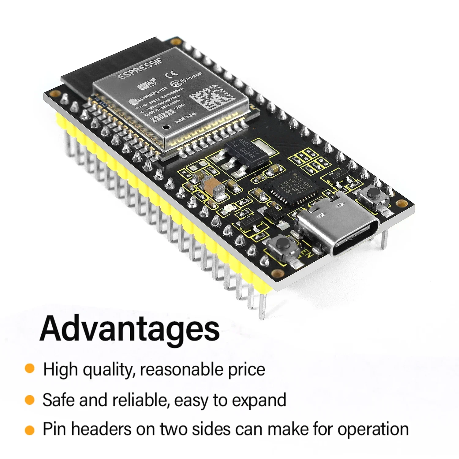 When it comes to developing and debugging with the development board, the both side standard pin headers can make your operation more simple and handy.