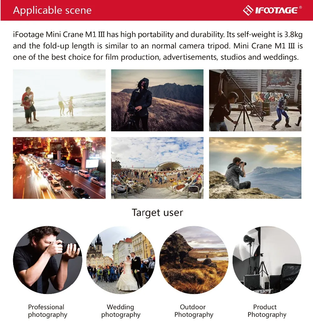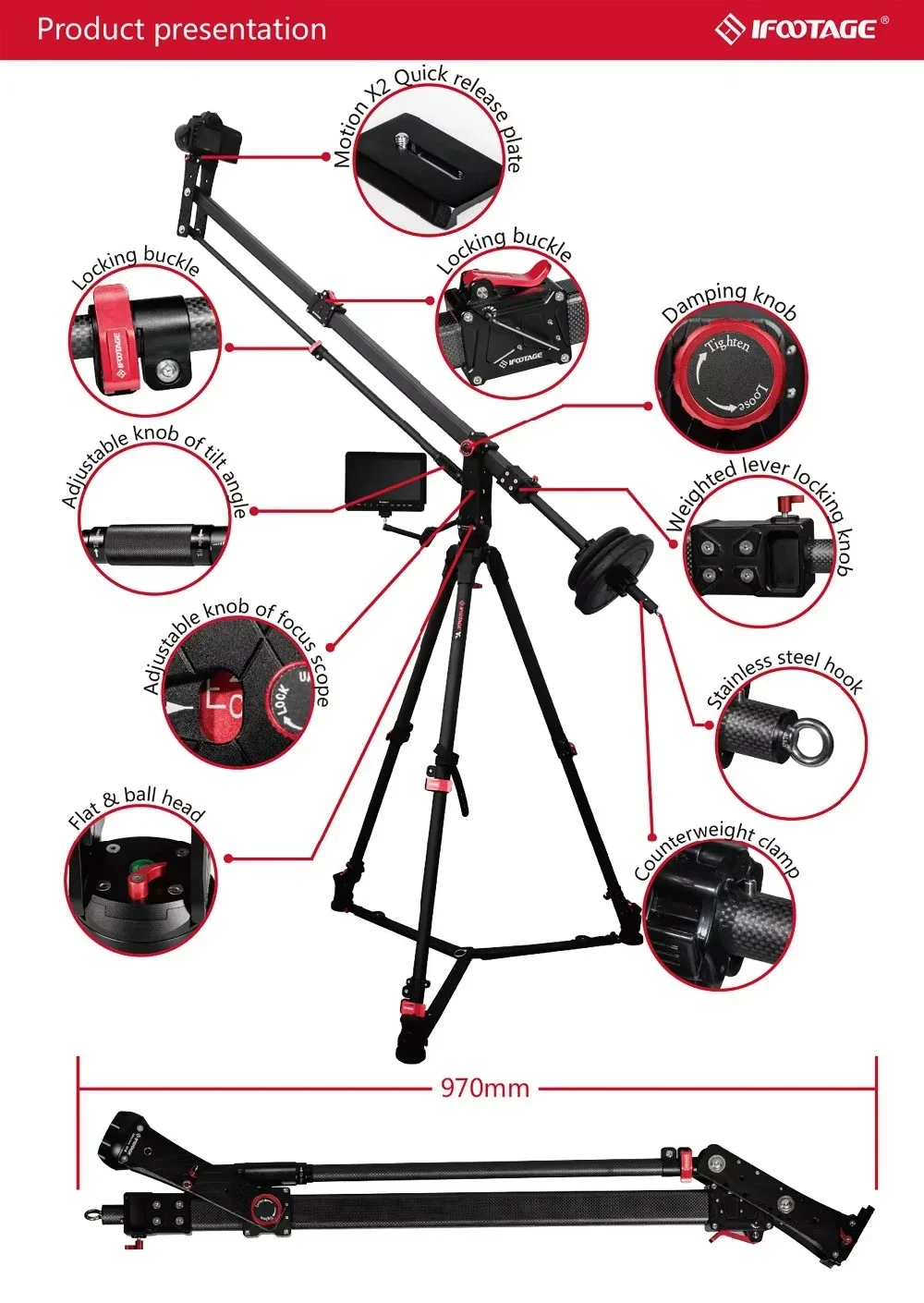 IFOOTAGE M1 III Carbon Fiber mini Crane Arm Tube Professional DSLR Video Camera Jib 15kg Maxload for Canon for Sony for Gopro