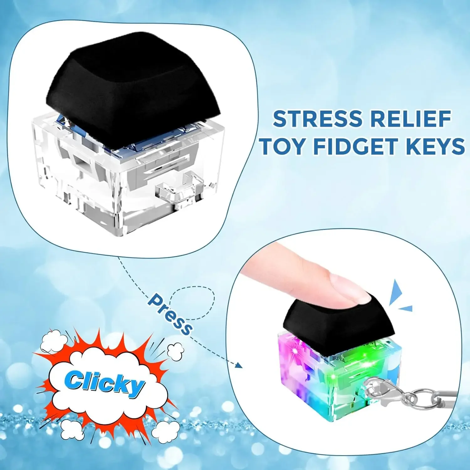 Keyboard Fidget Toys Keychain, Keyboard Decompression Toys Keyboard Fidget Toy Stress Relief Gifts Finger Clicker Toys Key Chain