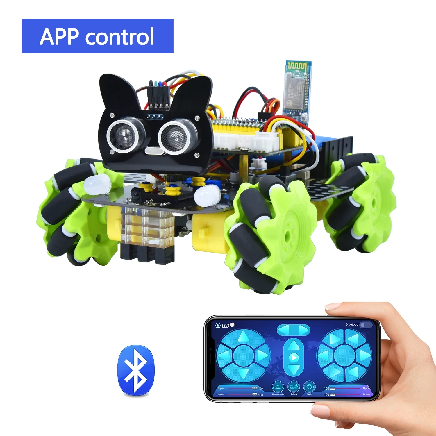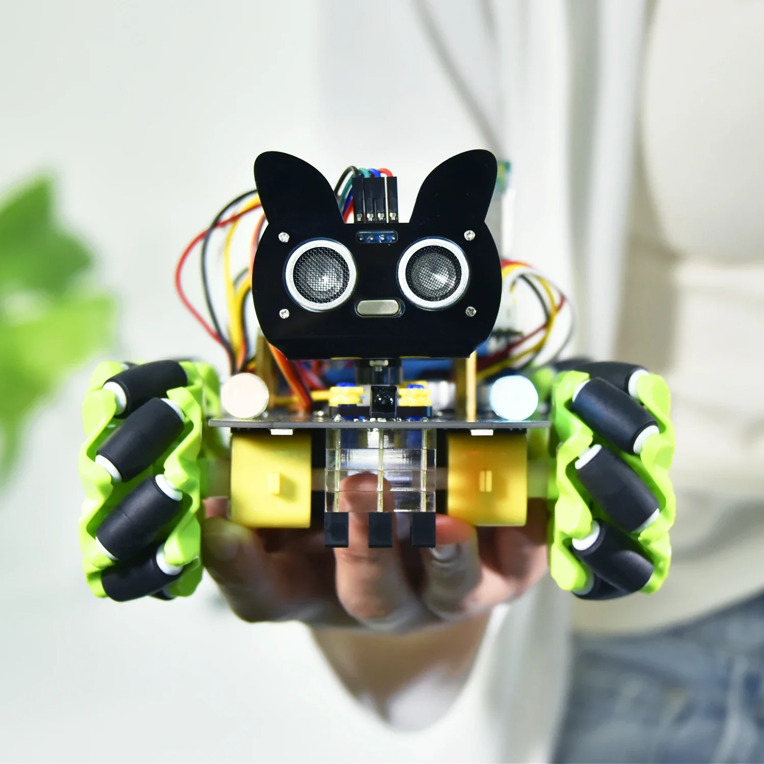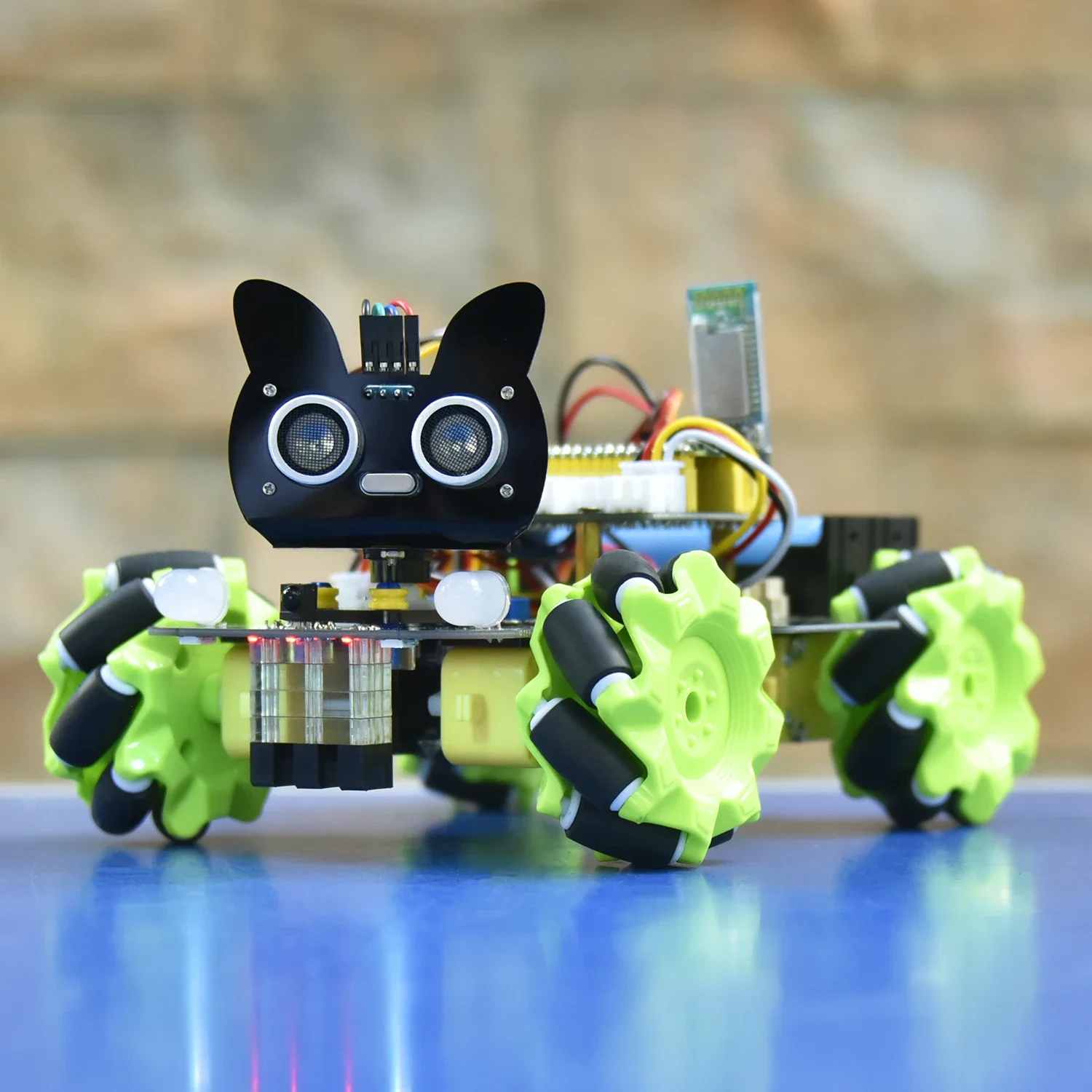 What’s more, the 4 WS2812RGB LEDs enable to display different colors, and the 2 seven-color lights empower to make direction lights for the car. By the way, the motor speed of this product is adjustable.