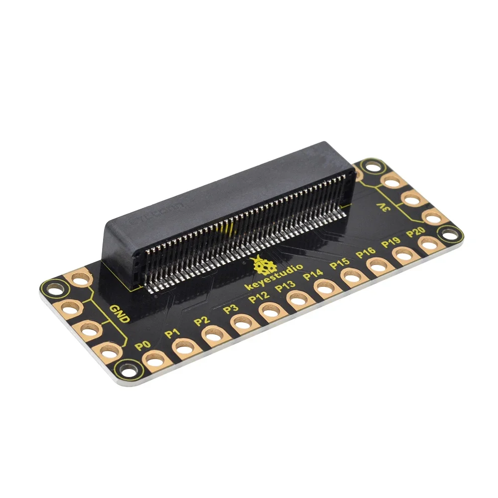 This edge connector offers access to a number of the BBC micro:bit processor pins, such as power IO (input/output) interface, connection pins P0、P1、P2、P3、P12、P13、P14、P15、P16、P19、P20 .