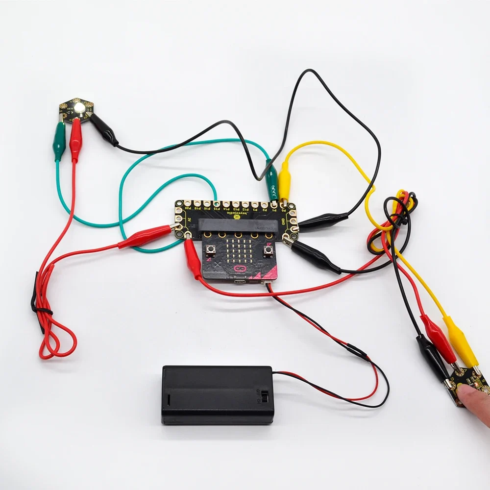 This breakout board has been designed to offer an easy way to connect additional circuits and hardware to the edge connector on the BBC micro:bit. It provides an easy way of connecting circuits using Alligator clip lines.
