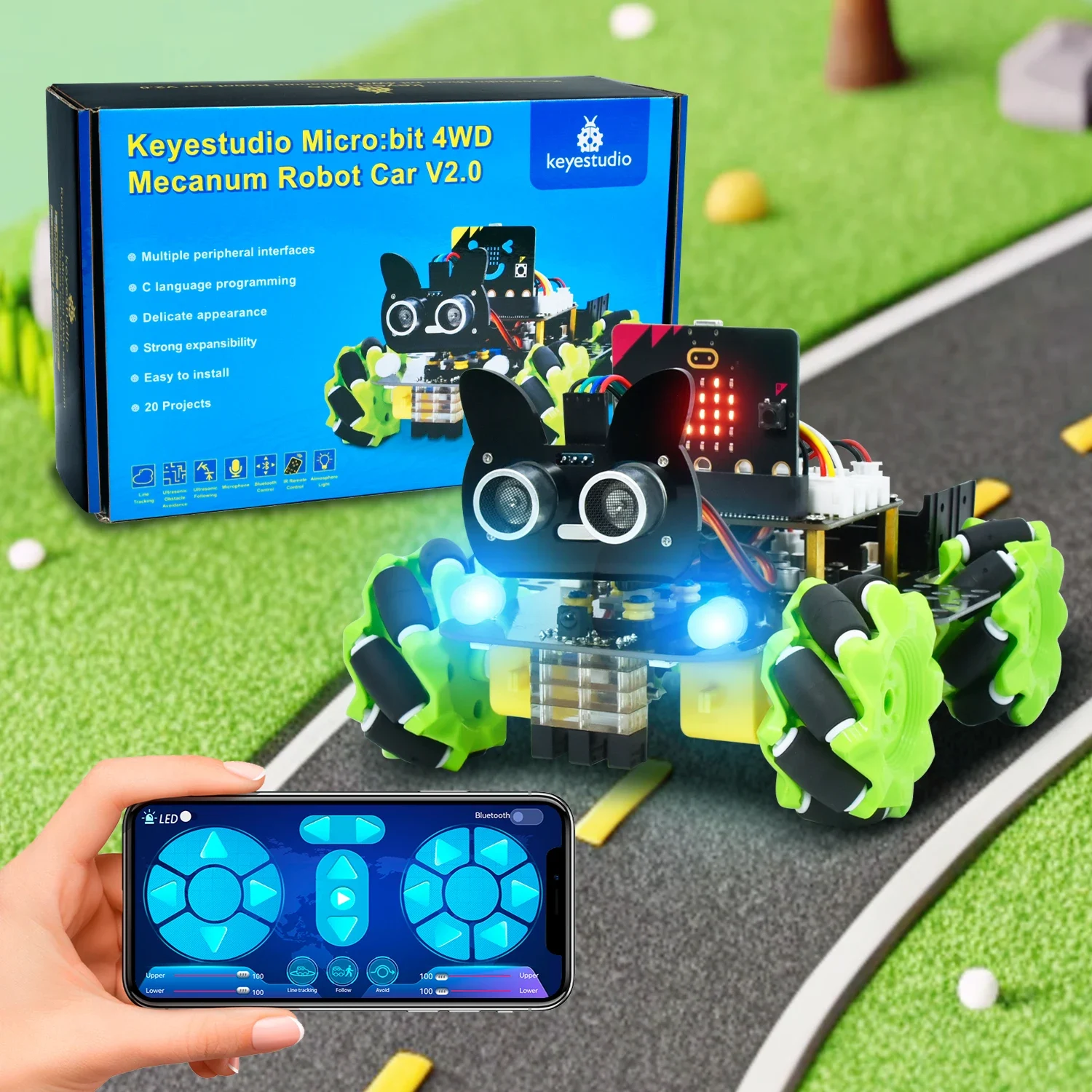 أنت تشاهد الآن:Keyestudio Microbit V2.0 4WD Mecanum سيارة روبوت ذكية + 18 مشاريع لـ BBC Micro: bit Robot Car Python Kit STEM ألعاب قابلة للبرمجة
