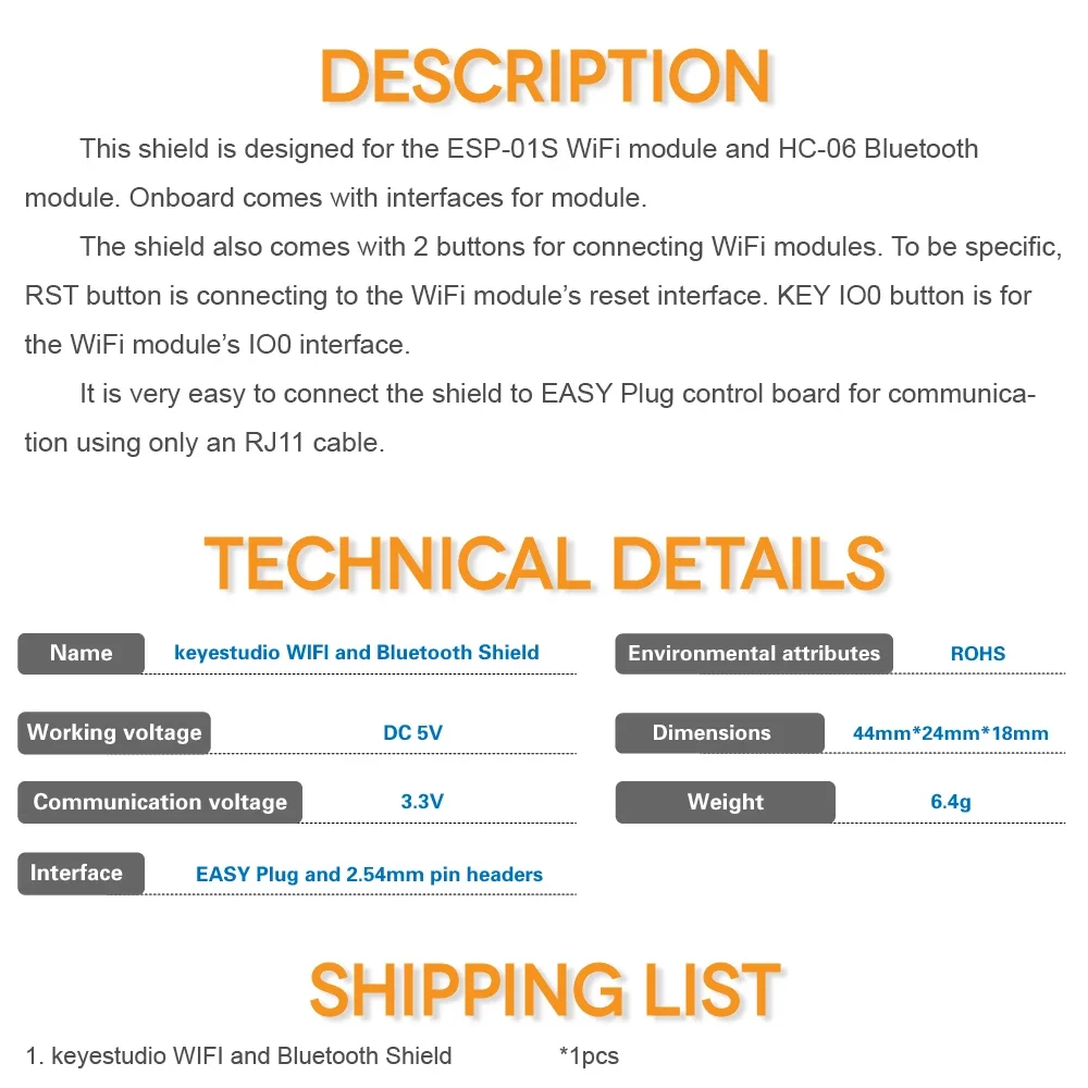 Keyestudio RJ11 EASY plug WIFI and Bluetooth Shield For Arduino /Compatible with ESP8266 WIFI