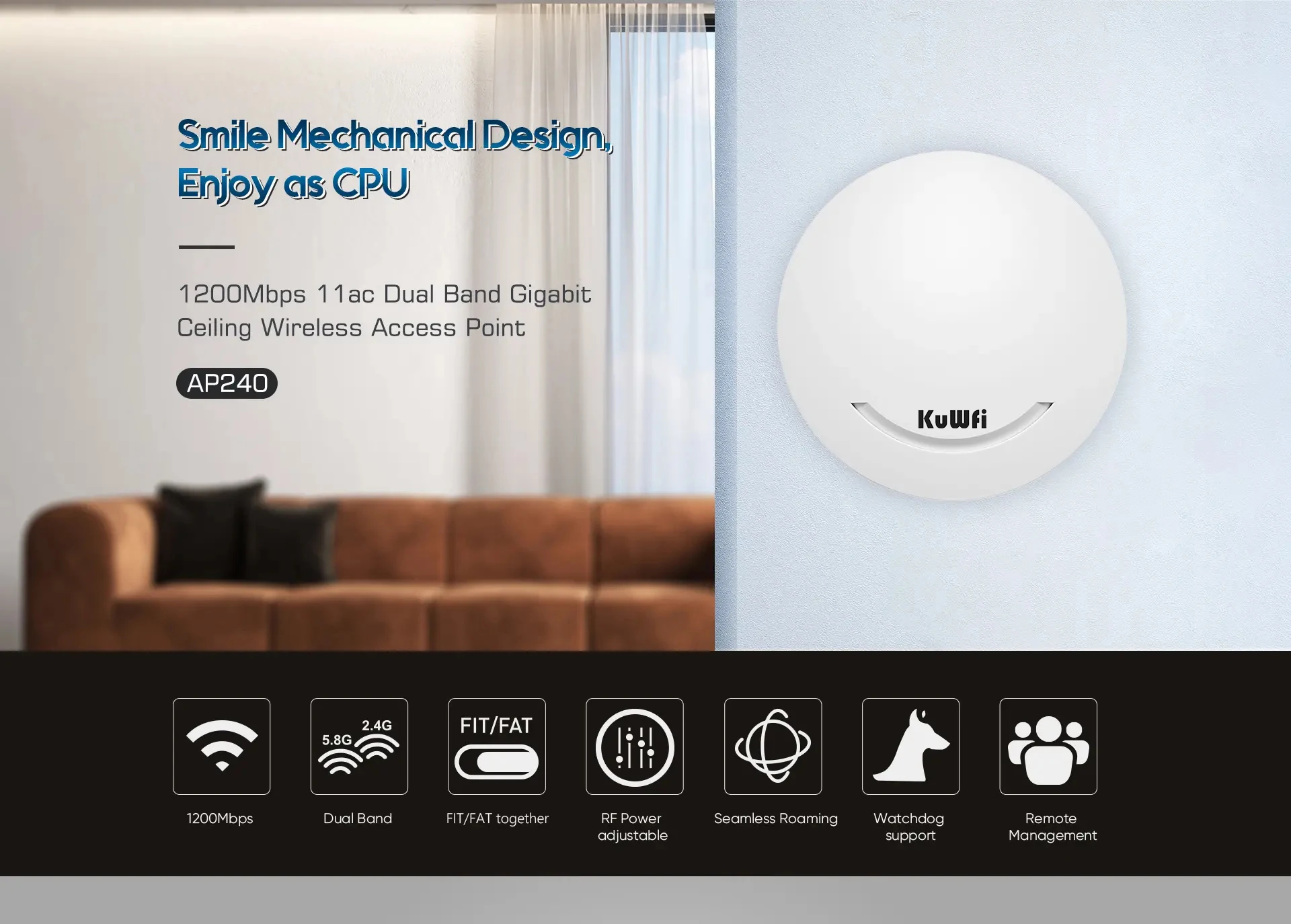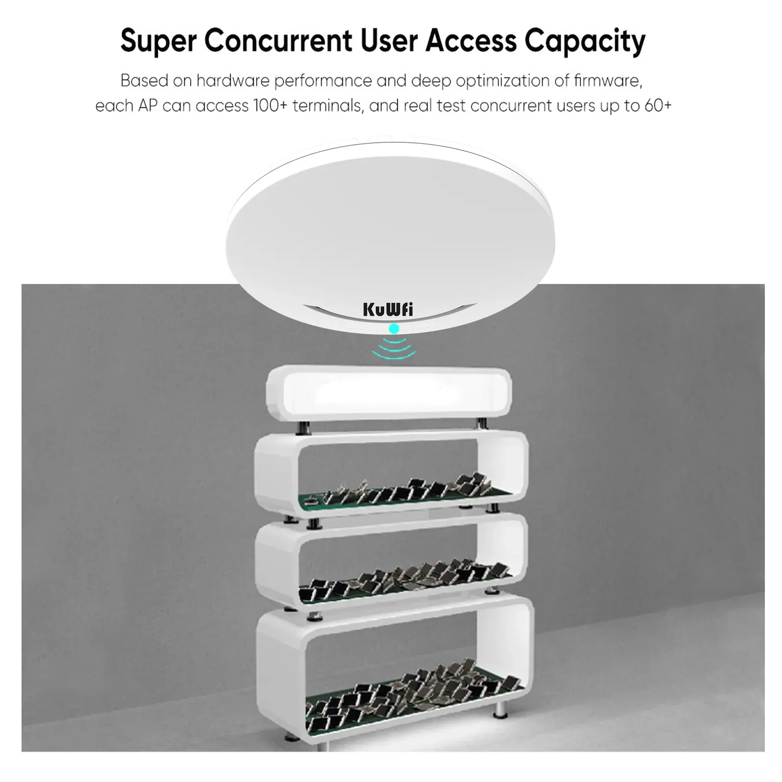 KuWFi 1200Mbps 2.4G 5.8G Dual Band Wireless WiFi Router Ceiling AP Router Wi-Fi Access Point 100Mbps RJ45 Port Support 48V POE