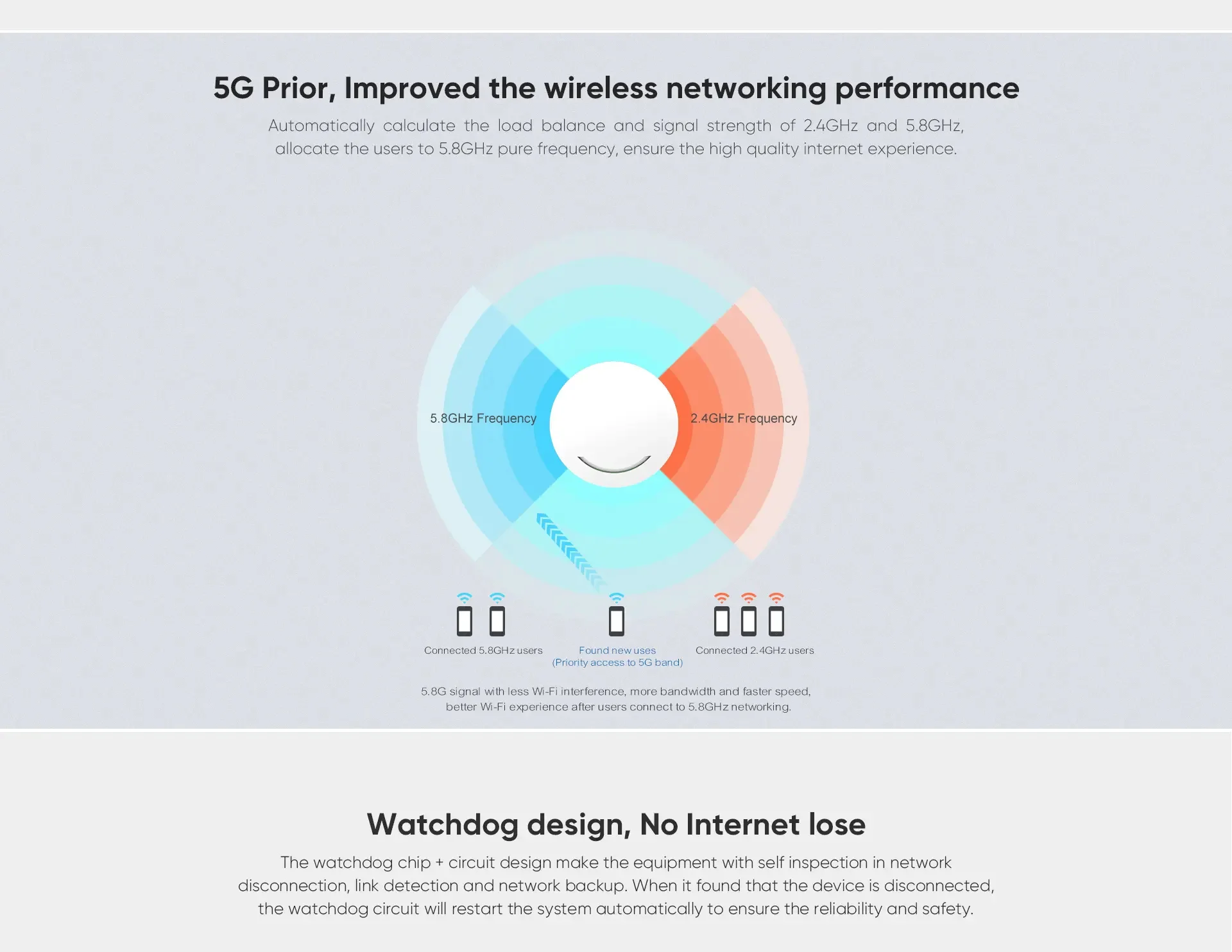1. Comply with IEEE 802.11ac/b/g/n, dual band, 1200Mbps Data Rate,11ac 2×2 MIMO,technology,2* 10/100Mbps Ethernet Ports