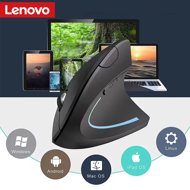 Lenovo Wireless Vertical Mouse Rechargeable Personalised Side Grip Ergonomic Bluetooth 2.4G Silent Gaming PC Computer Mouse