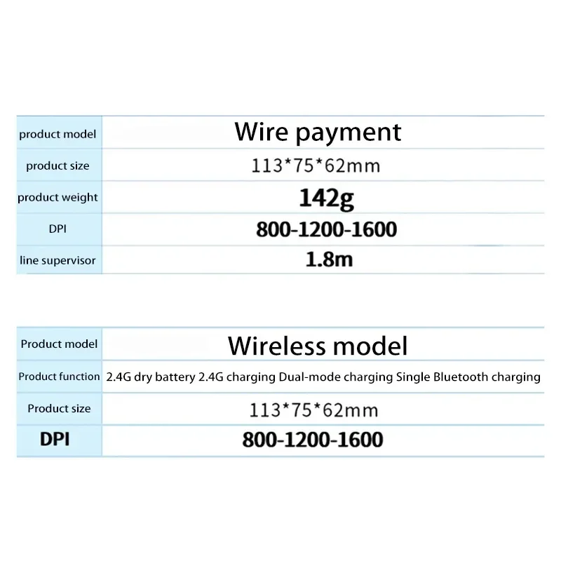 • Feture 14: Dual Modes Bluetooth-compatible 2.4G USB Mute mouse