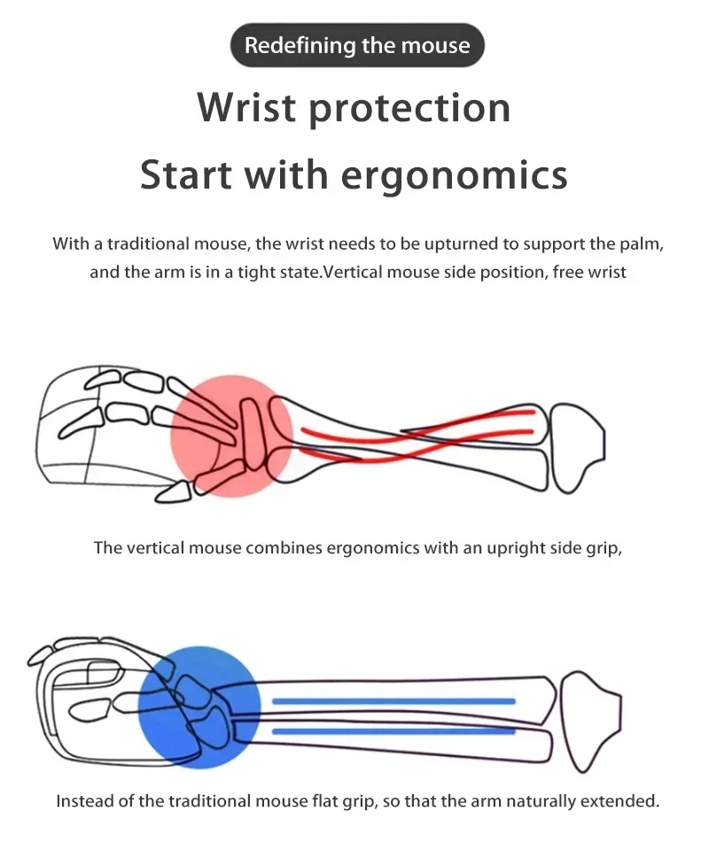 2.4GHz Wireless Vertical Mouse Rechargeable Ergonomic Mice Adjustable DPI Right Vertical Mouse for Gamer Computer