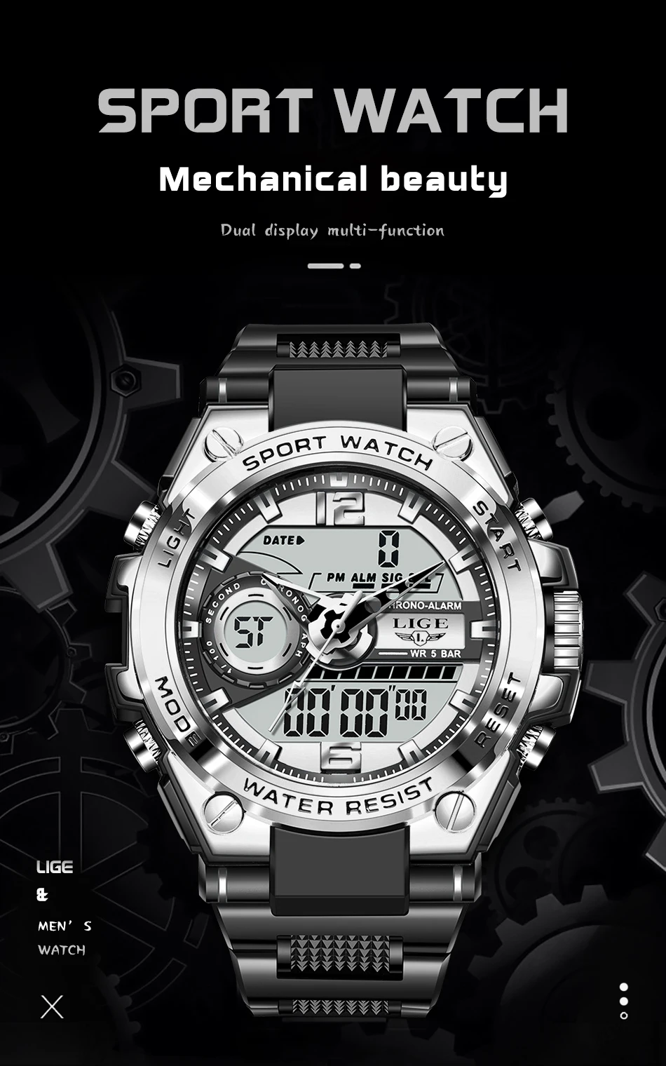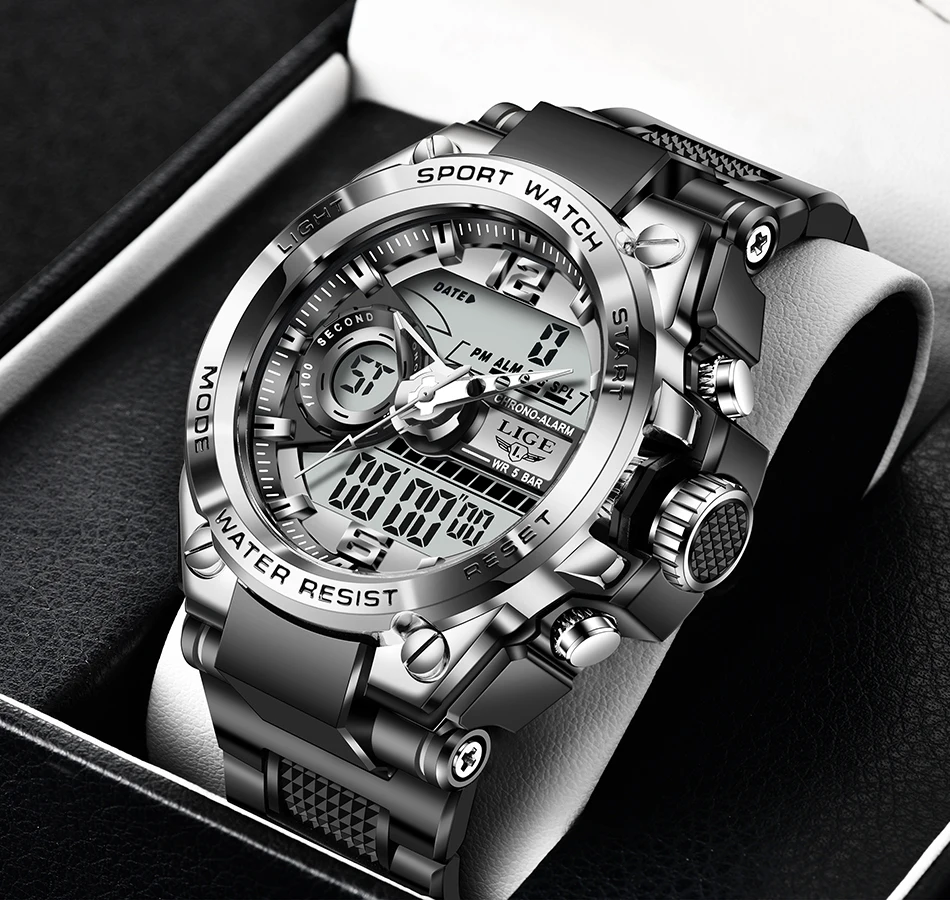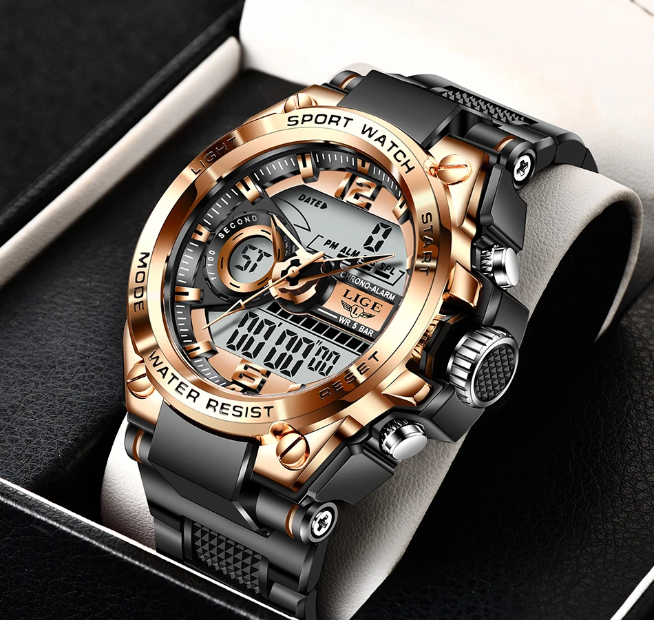 LIGE Digital Men Military Watch 50m Waterproof Wristwatch LED Quartz Clock Sport Watch Male Big Watches Men Relogios Masculino