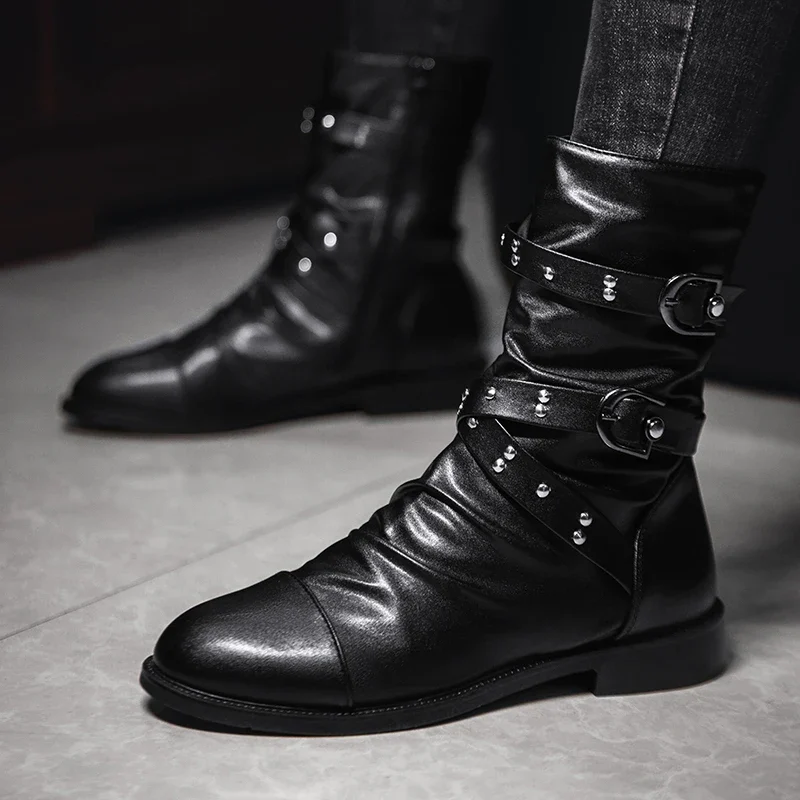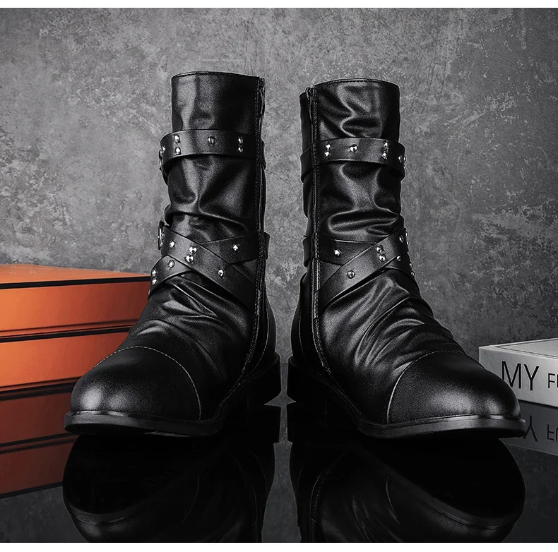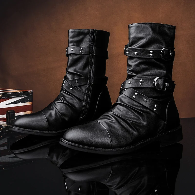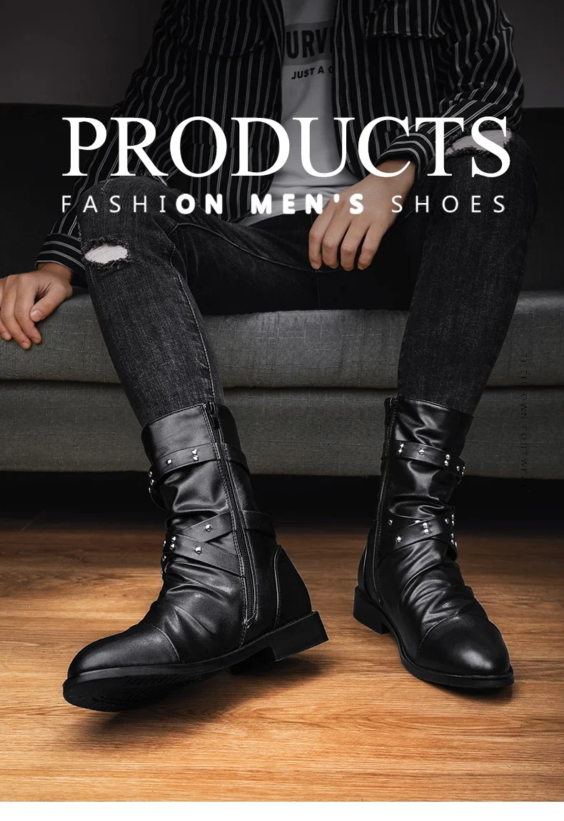 Men Boots Rivet Combat Boots Mens Vintage Cowboy Boots Punk Goth Biker Shoes PU Leather Outdoor Motorcycle Tactical Army Boots