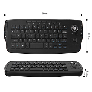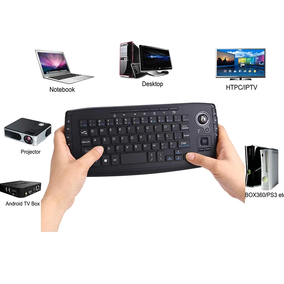 Multimedia 2.4Ghz Wireless Mini Keyboard with Trackball Mouse Scroll Wheel for PC Mac Android Tv Box, Remote Controller