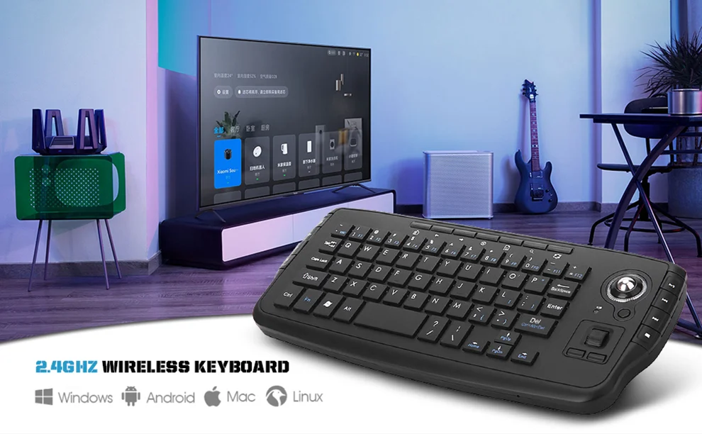 This is a 2.4GHz wireless mini keyboard and trackball mouse combo, with USB interface receiver. Plug and play, simple and smooth. The mini keyboard ensures convenient typing, and you can control your devices on your couch.