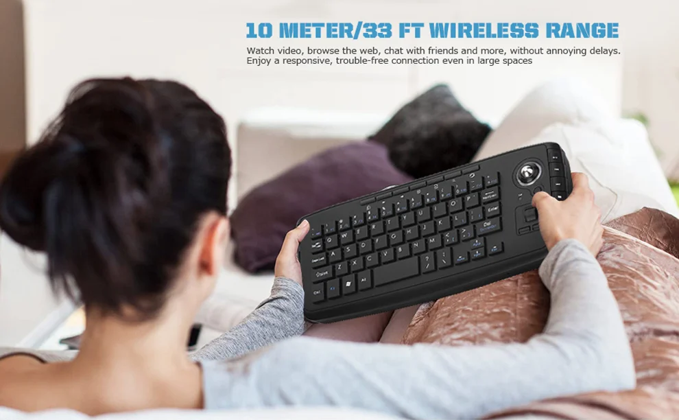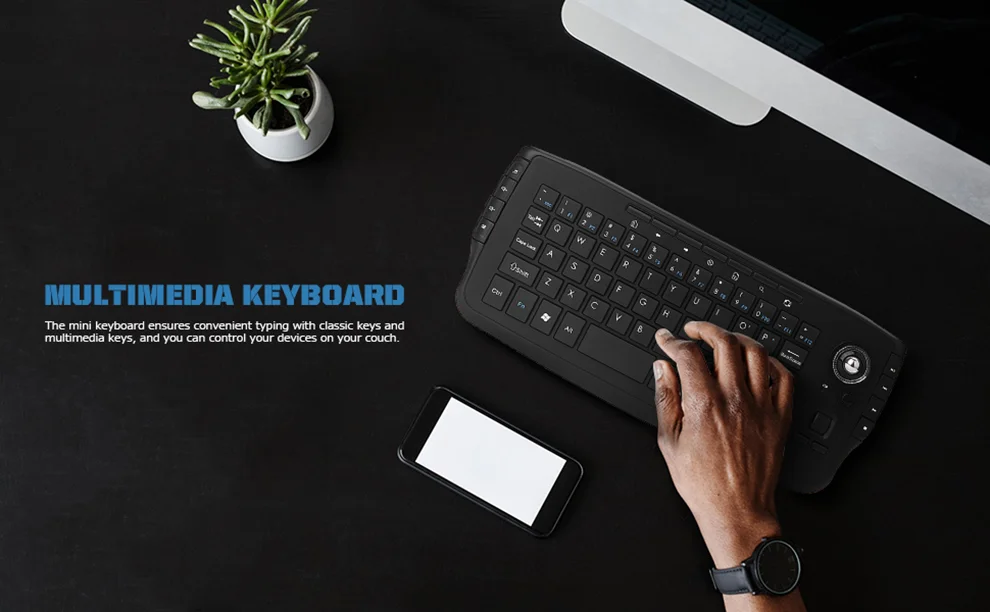 The mini keyboard ensures convenient typing with classic keys and multimedia keys, and you can control your devices on your couch.