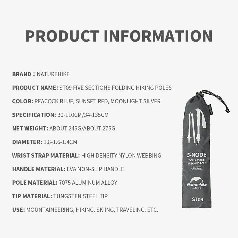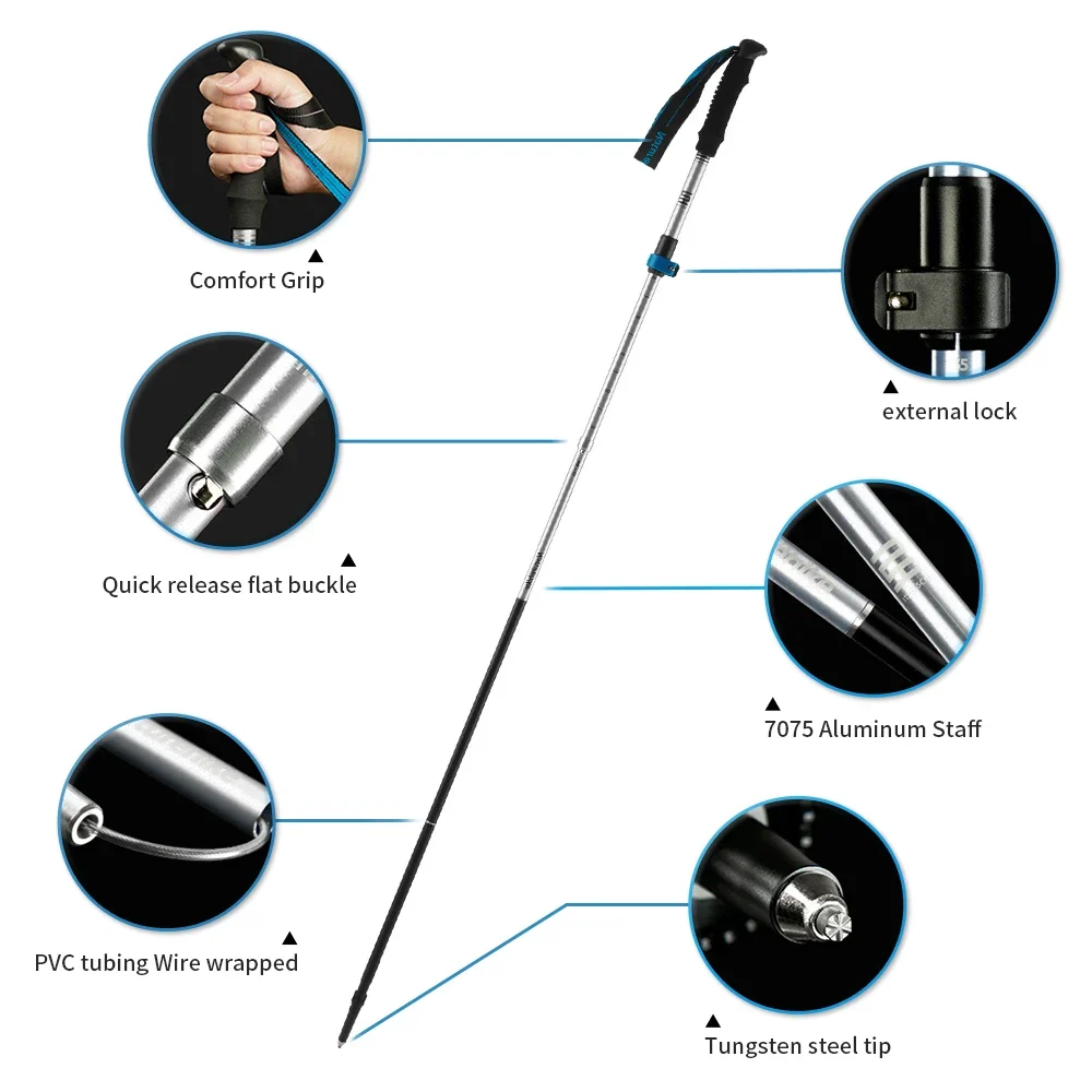 Naturehike أقطاب رحلات السفاري خفيفة قابلة للطي 1 قطعة عصا للمشي المحمولة الألومنيوم المشي لمسافات طويلة تلسكوبي عصا التخييم عصا للمشي