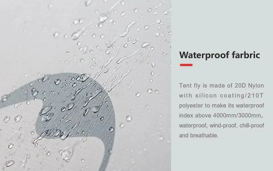 • خيمة خارجية مع مؤشر مقاومة المياه: >3000 mm