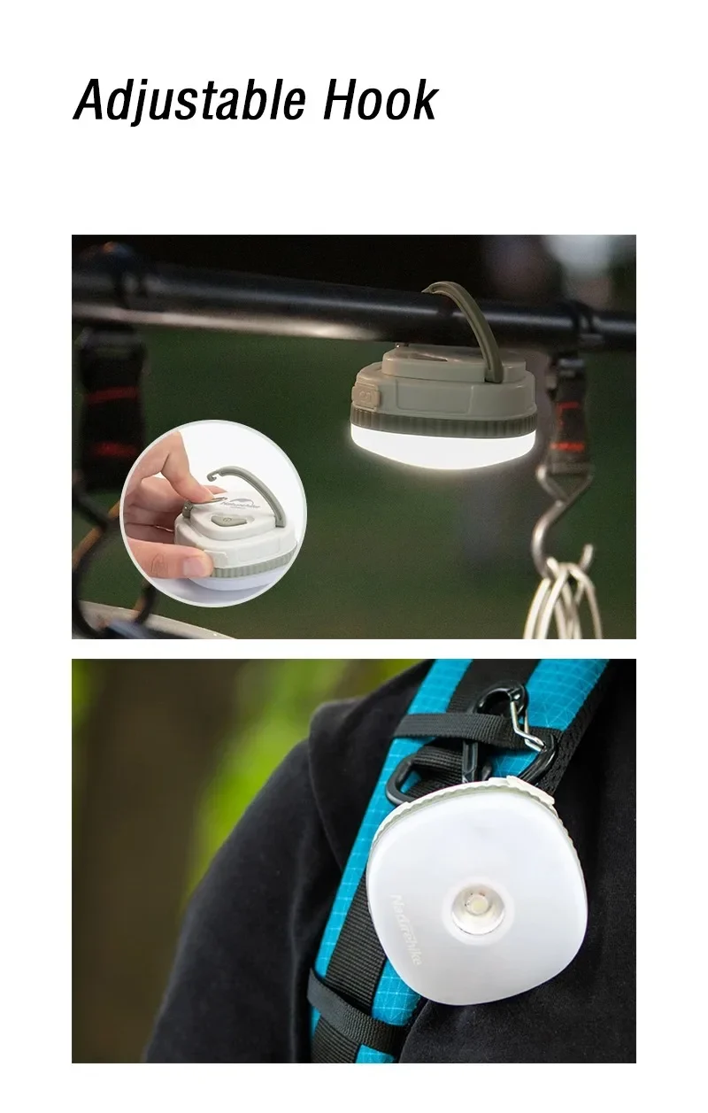 Naturehike 2025 تشغيل الرياضة مصباح USB خفيفة مقاوم للماء خيمة معلقة ضوء وسائط متعددة بطارية معلقة ضوء المغناطيس