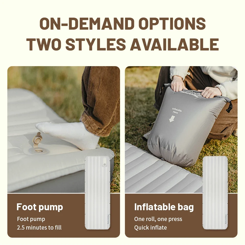 Naturehike 2025 جديد التخييم مرتبة هوائية وضعين خفيفة المحمولة مضخة القدم النوم الحصير للطي في الهواء الطلق سرير للتنزه وسادة
