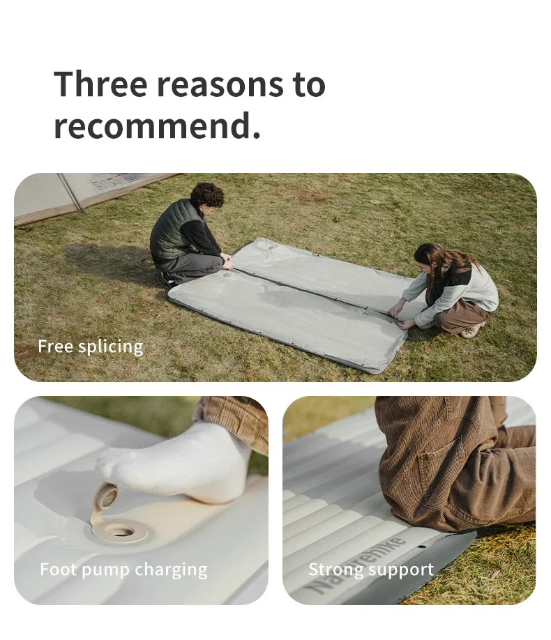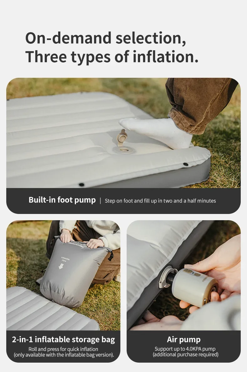 Naturehike 2025 جديد التخييم مرتبة هوائية التضخم السريع المحمولة نزهة الحصير 450 كجم عالية تحميل 25 سنتيمتر المشي لمسافات طويلة وسادة النوم