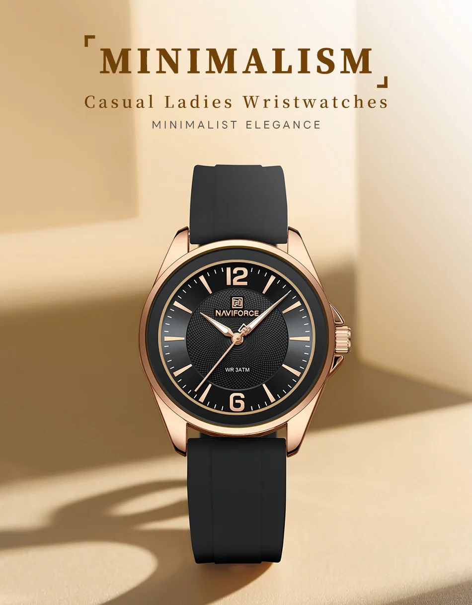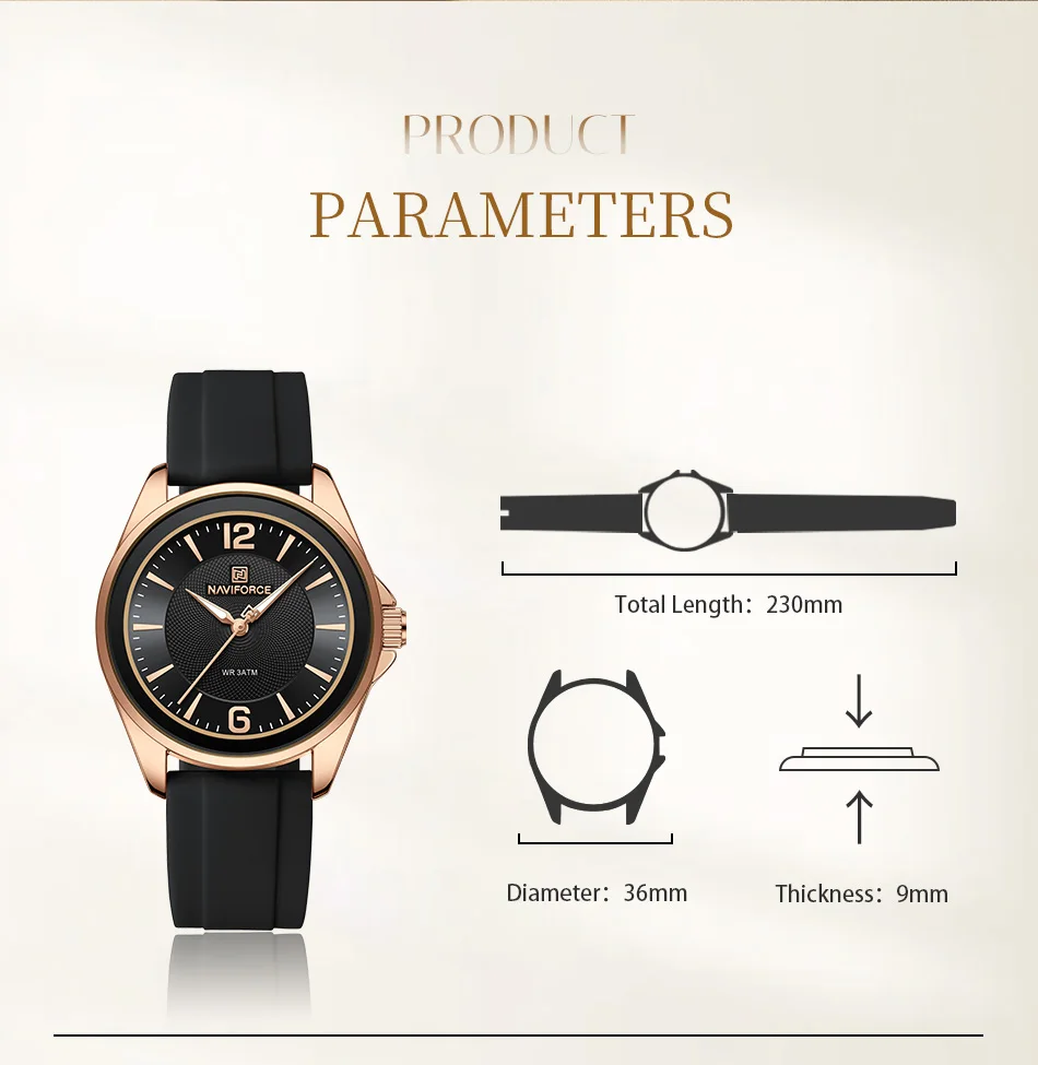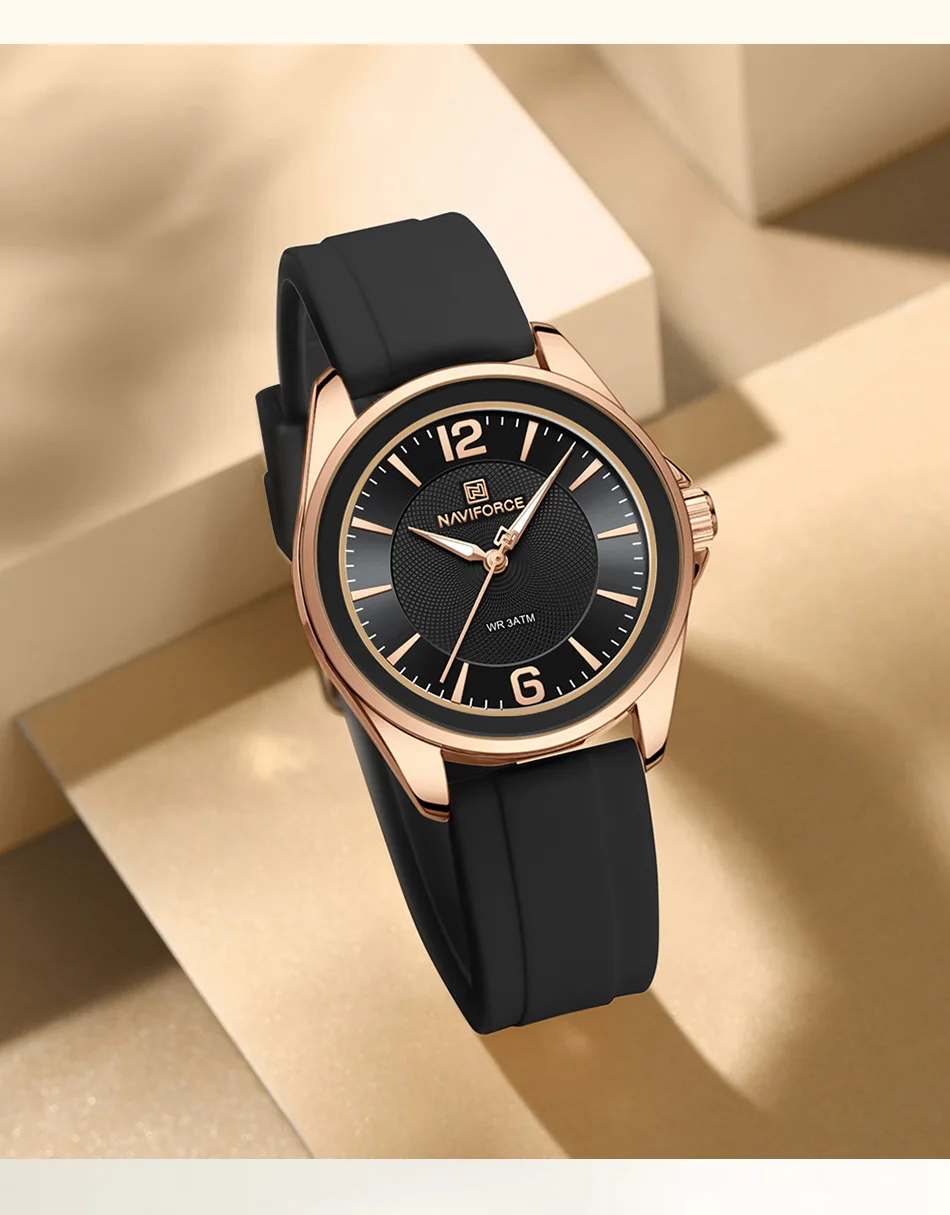 NAVIFORCE Original Women’s Watches Classic Round Dial Silicone Strap 3ATM Waterproof Luxury Watch for Women Give for girls gifts