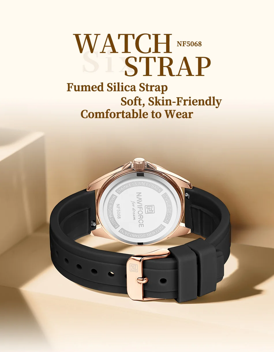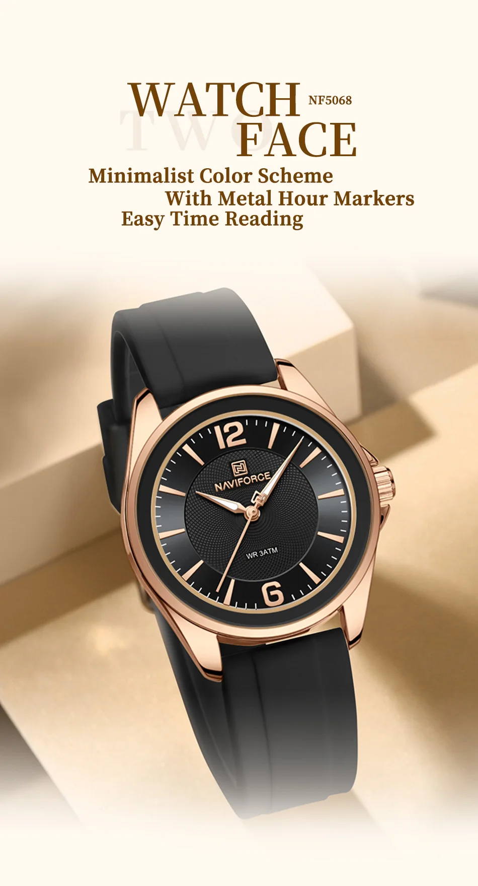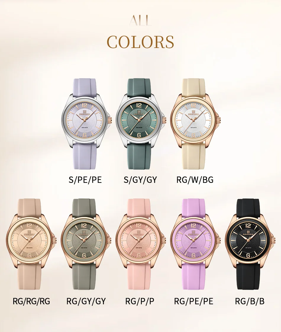NAVIFORCE Original Women’s Watches Classic Round Dial Silicone Strap 3ATM Waterproof Luxury Watch for Women Give for girls gifts
