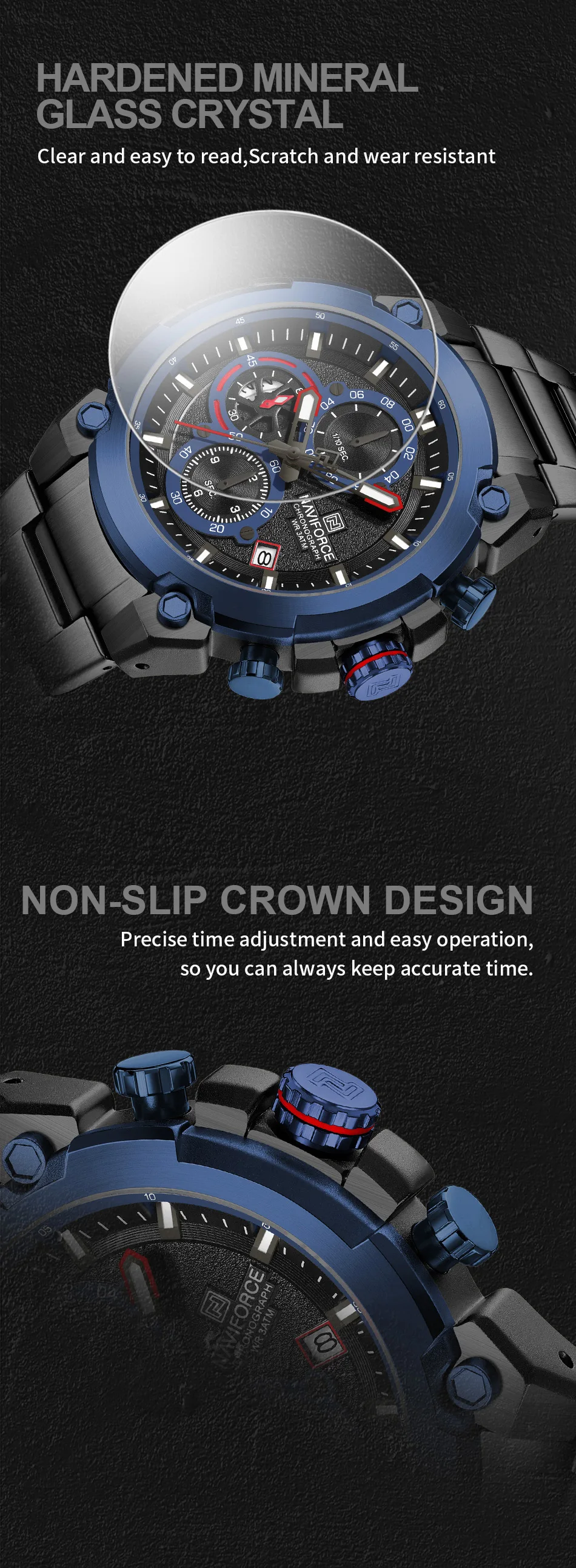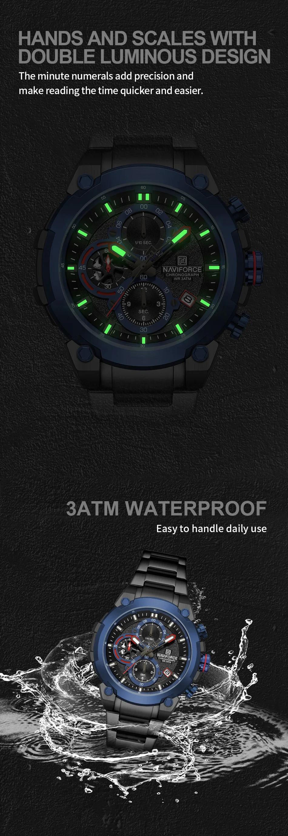 NAVIFORCF Mens Military Watches Luxury Wrist Watch Quartz Clock Watch Hot Fashion Men Waterproof Chronograph Relogio Masculino