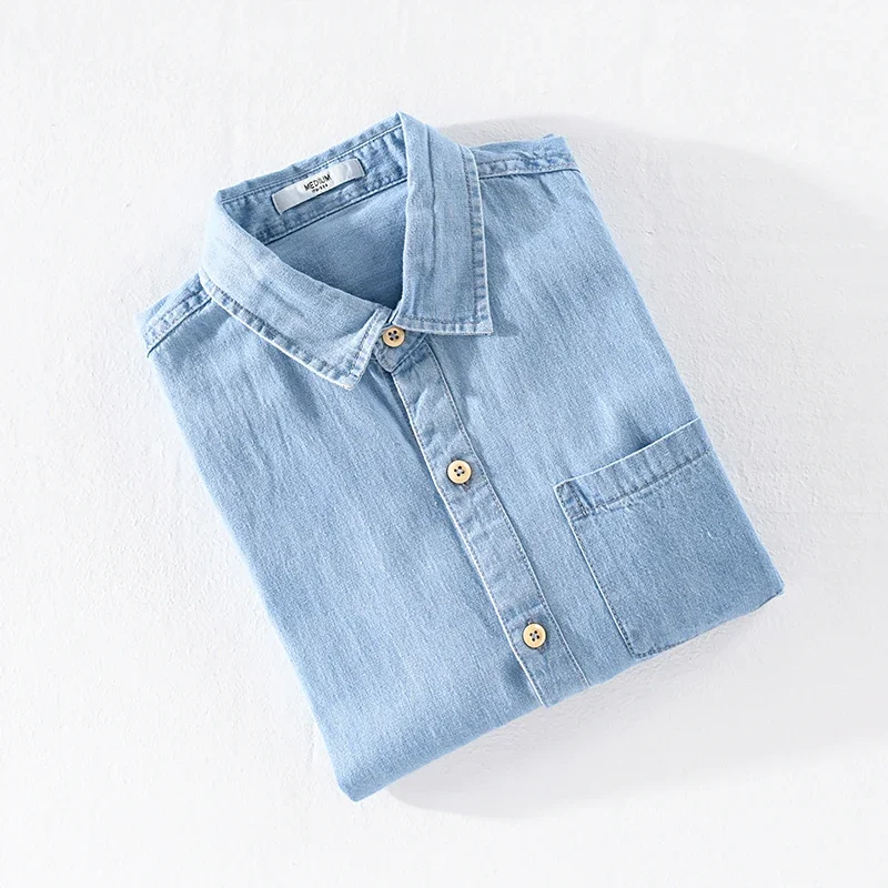 2025 Spring New Pure Cotton Loose Cargo Denim Shirts for Men Clothing Casual Streetwear Men Tops CM7596