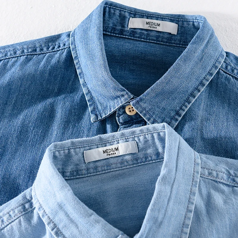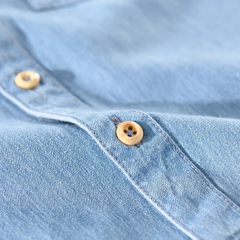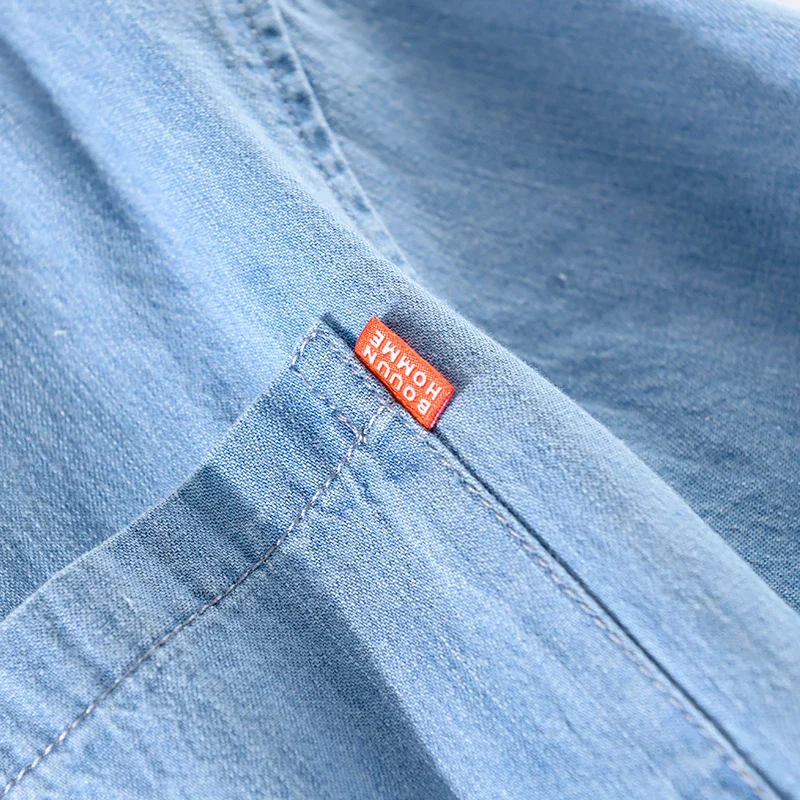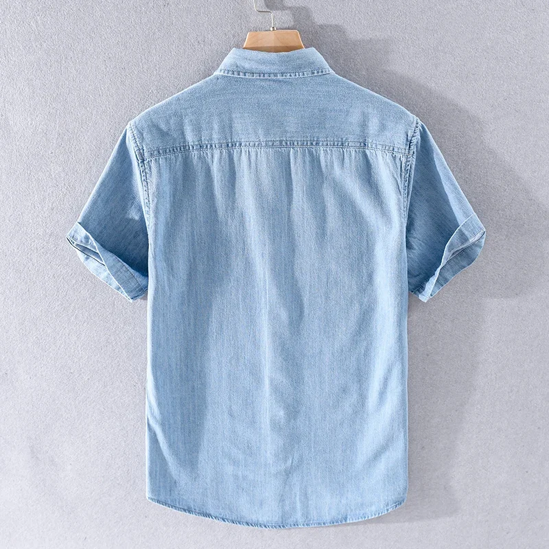 أنت تشاهد الآن:New arrival summer 100% cotton denim shirts men brand short sleeve shirt for men casual fashion shirt mens camsieta camisa