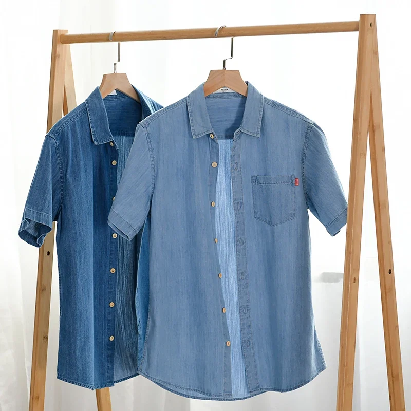 New arrival summer 100% cotton denim shirts men brand short sleeve shirt for men casual fashion shirt mens camsieta camisa