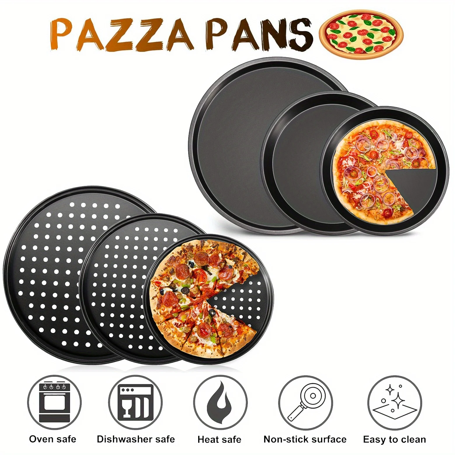 Nonstick Carbon Steel Pizza Crisper Trays Pizza Baking Pan Mold with Holes Round Deep Dish Plate