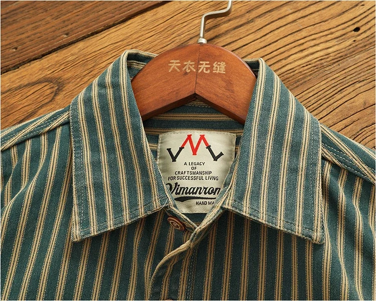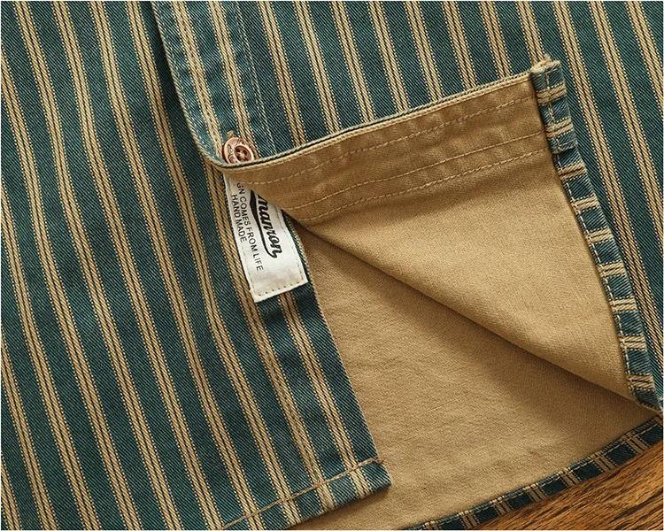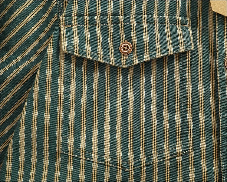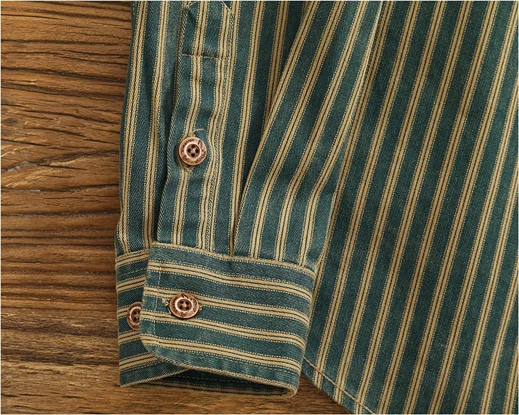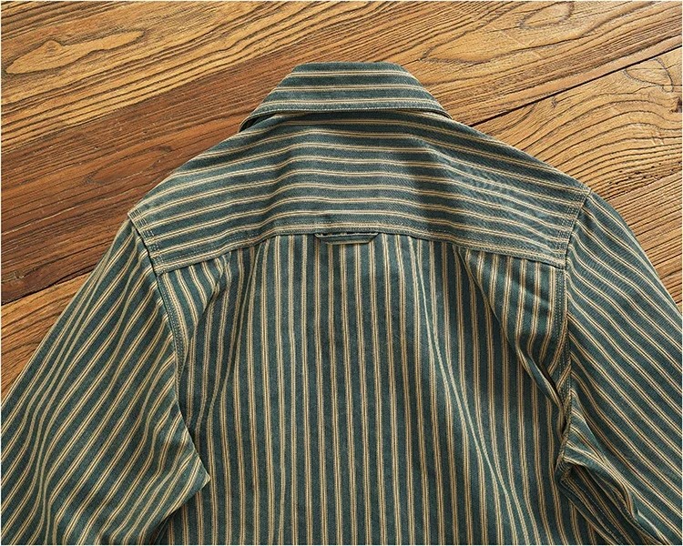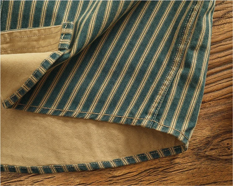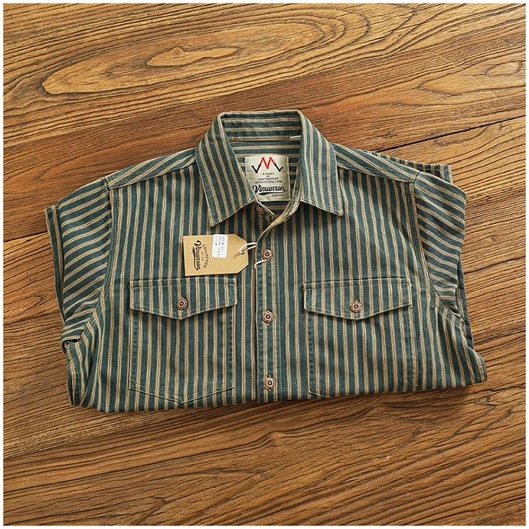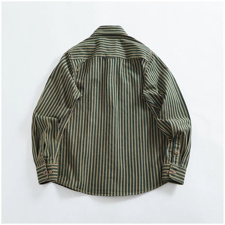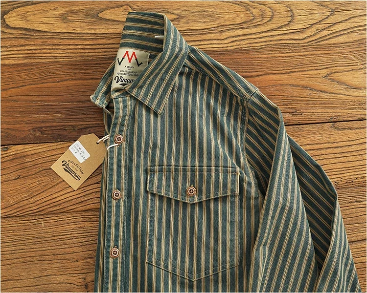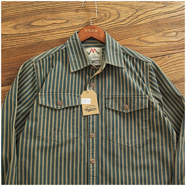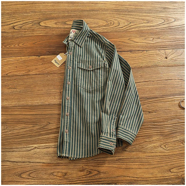 Nostalgic wash to do old blue vertical stripe denim shirt men loose American long-sleeved overalls shirt coat