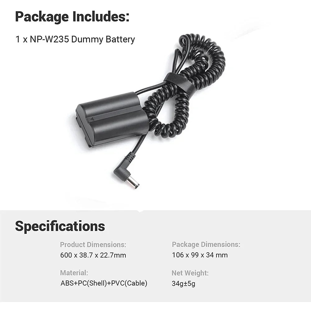 NP-W235 Dummy Battery Pack Coupler Charger with DC Male Connector Power Cable For FUJIFILM X-T4 XT4 GFX100S GFX 50S II Camera