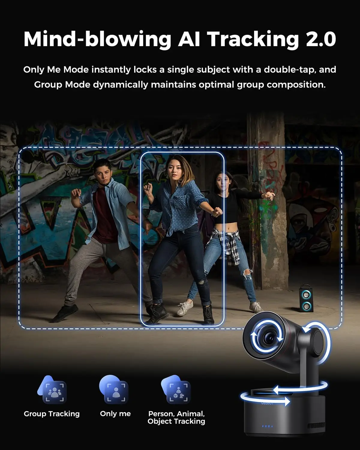 Improved intelligent tracking algorithm seamlessly keeps the subject in frame, enabling hands-free operation to concentrate on capturing outstanding video. The new ”Only Me” feature ensures unwavering focus on your selected subject. For group scenarios, our enhanced AI algorithm delivers precise Group Tracking.