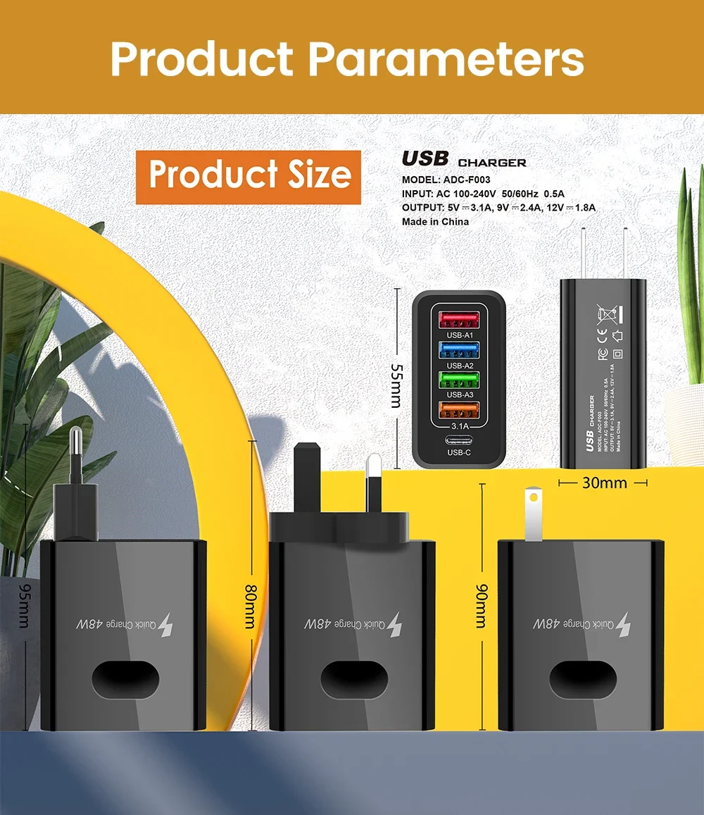 - Model Number: 48W 5 Ports USB Phone Chargers