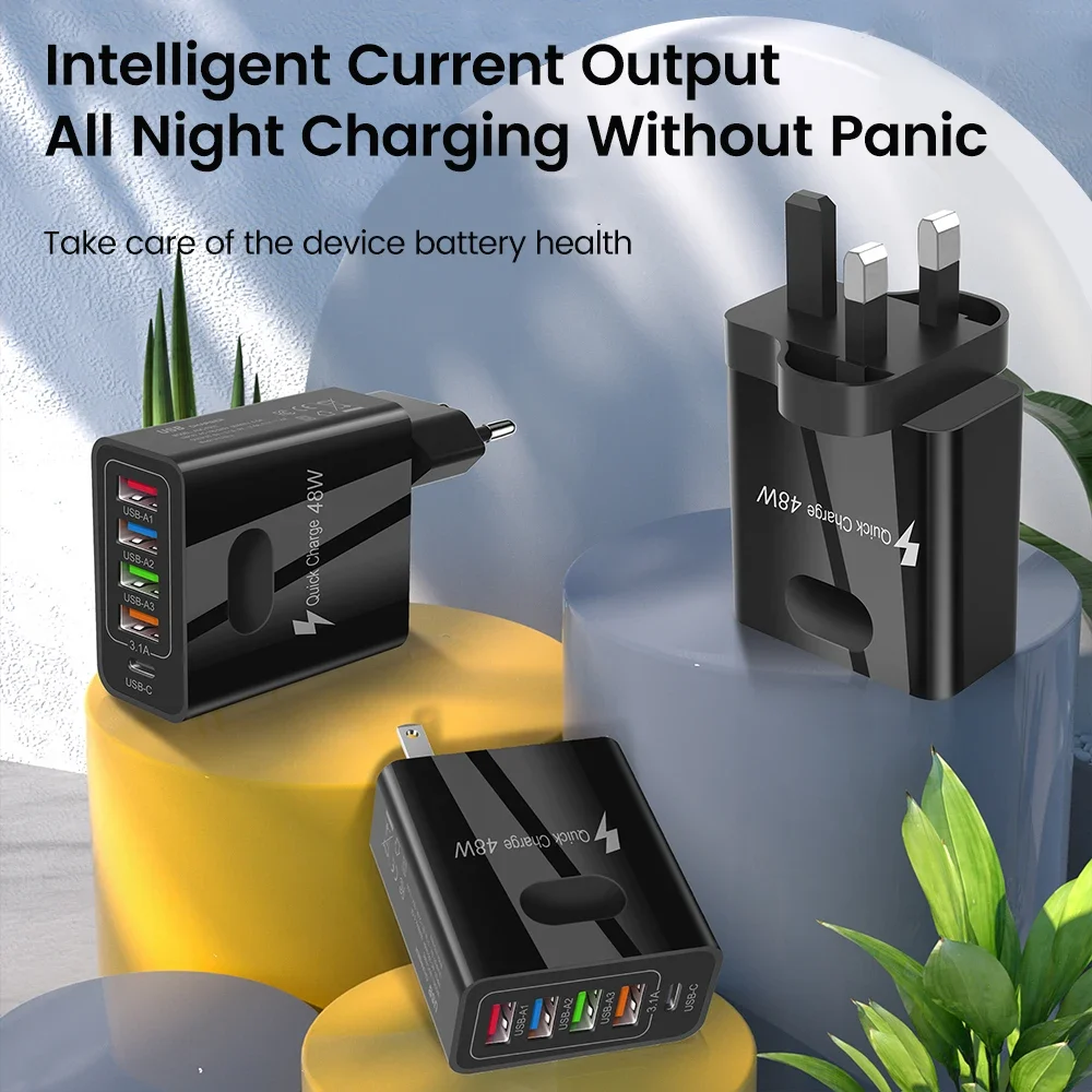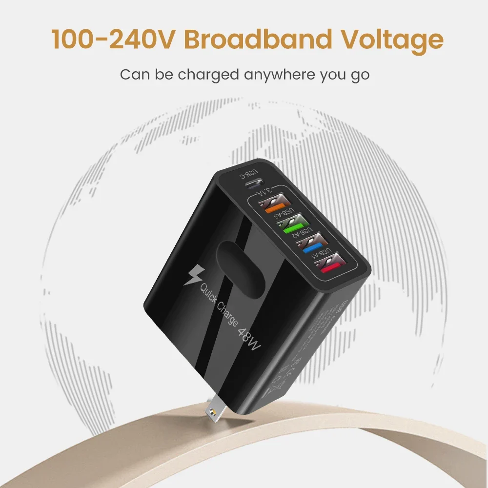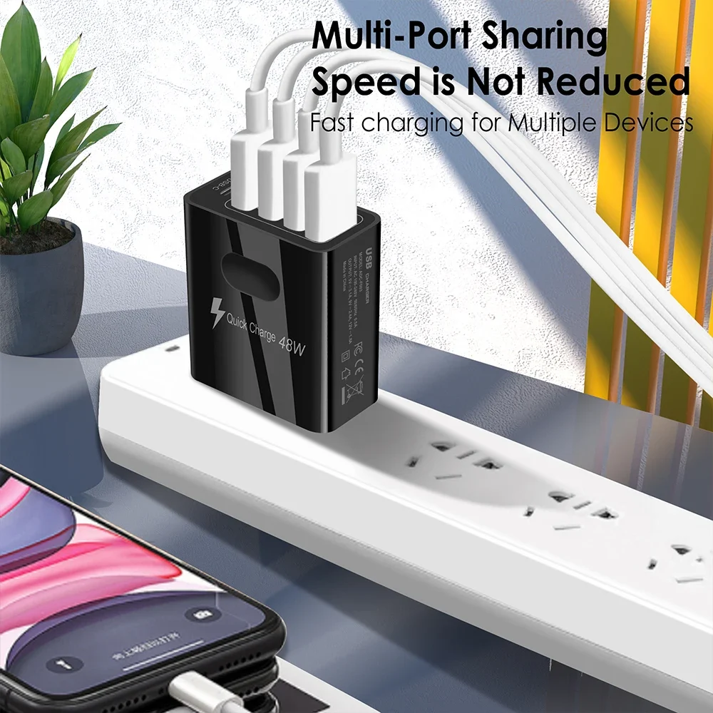 48W Charger USB PD Muti Plugs Fast Charging Charger Mobile Phone Quick Charging Type C Wall for IPhone Xiaomi Samsung