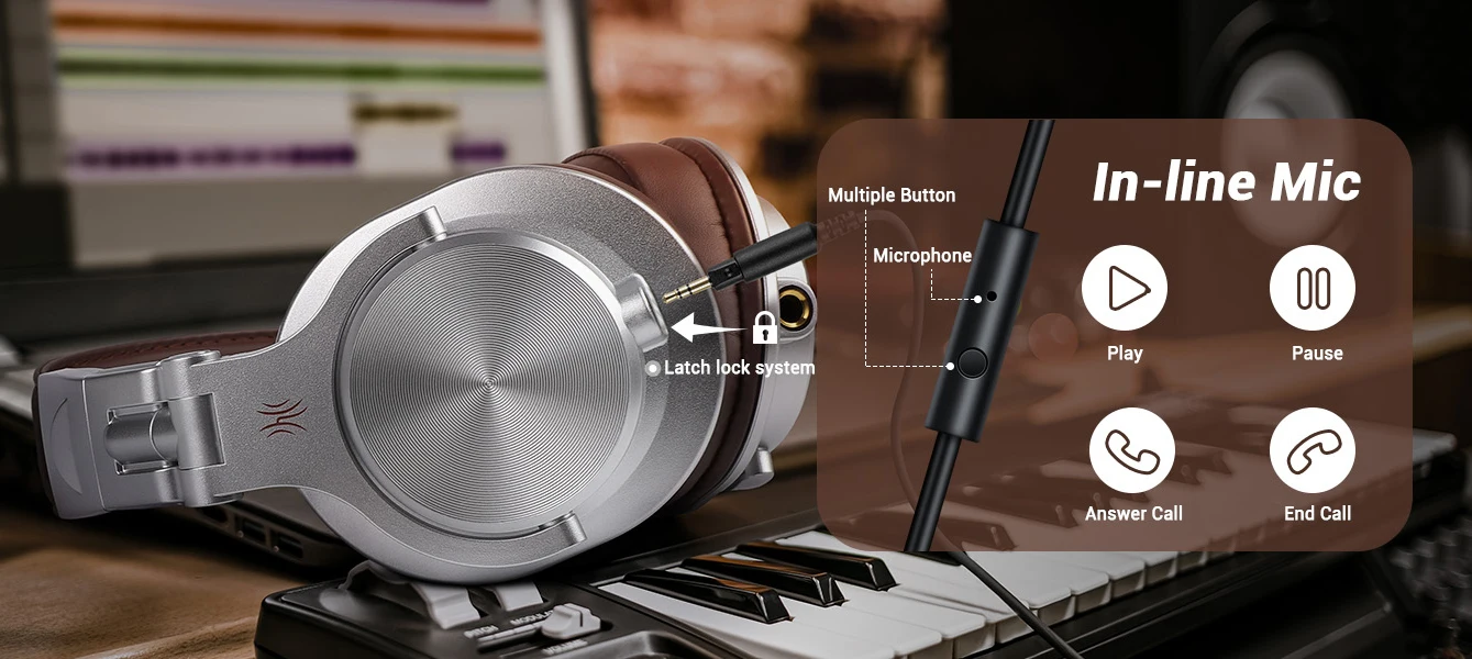 For ensuring a secure connection, we add a jack lock system on the stereo Aux cable. Also, you can use the mic button to pause or play music, and you can use it to answer or end a call.