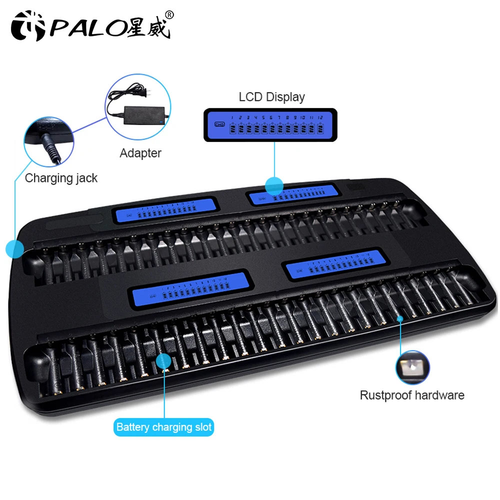 PALO 48 Slots Fast Charger AA AAA NIMH Smart Charger for 1.2V aa aaa NI-MH NICD Rechargeable Batteries Intelligent Charger 2A 3A