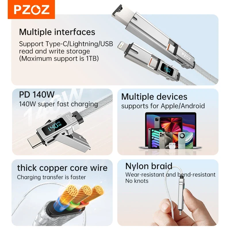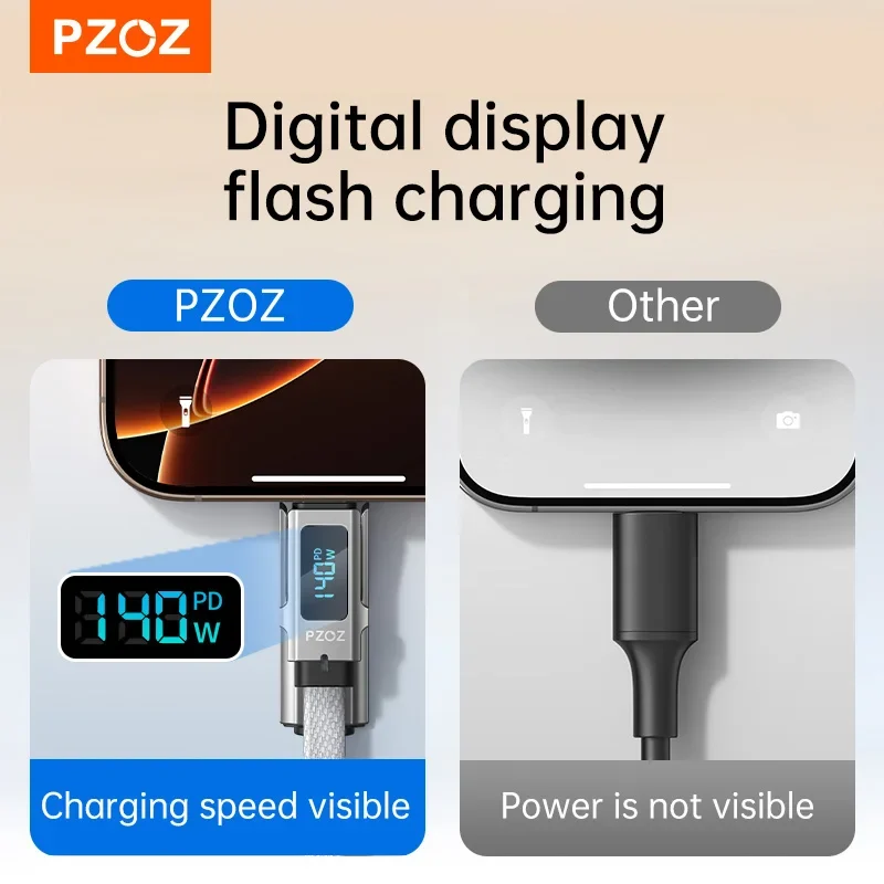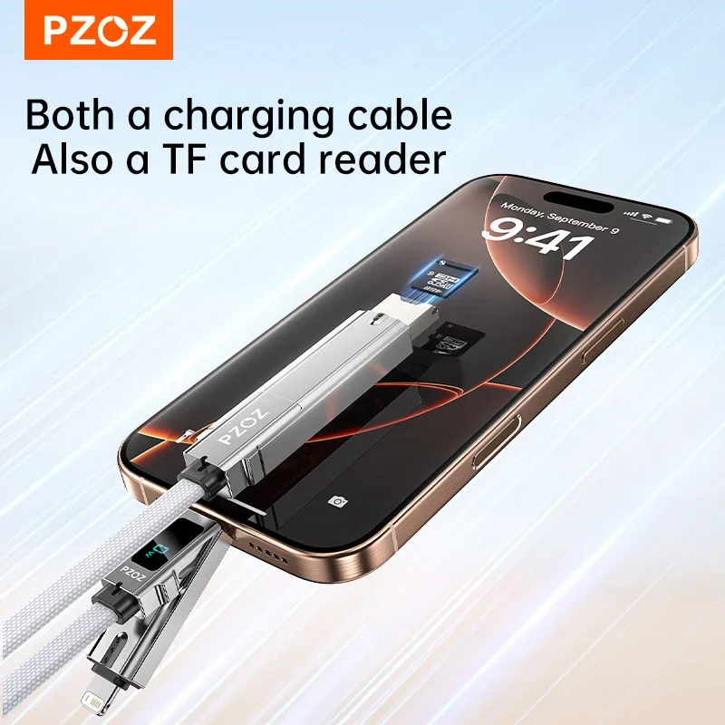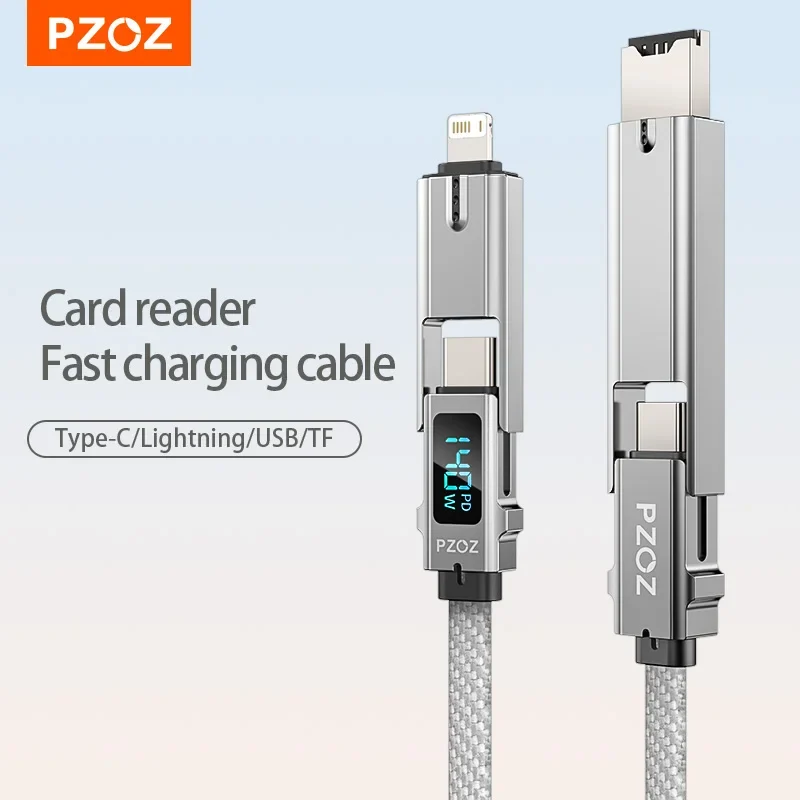 PZOZ 140W Fast Charging OTG Cable Digital Display PD USB C Cable For iPhone 16 15 14 Pro Max MacBook iPad TF Card Reader charger
