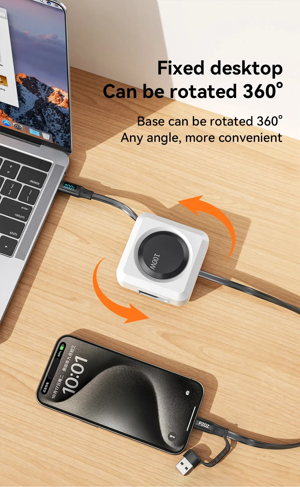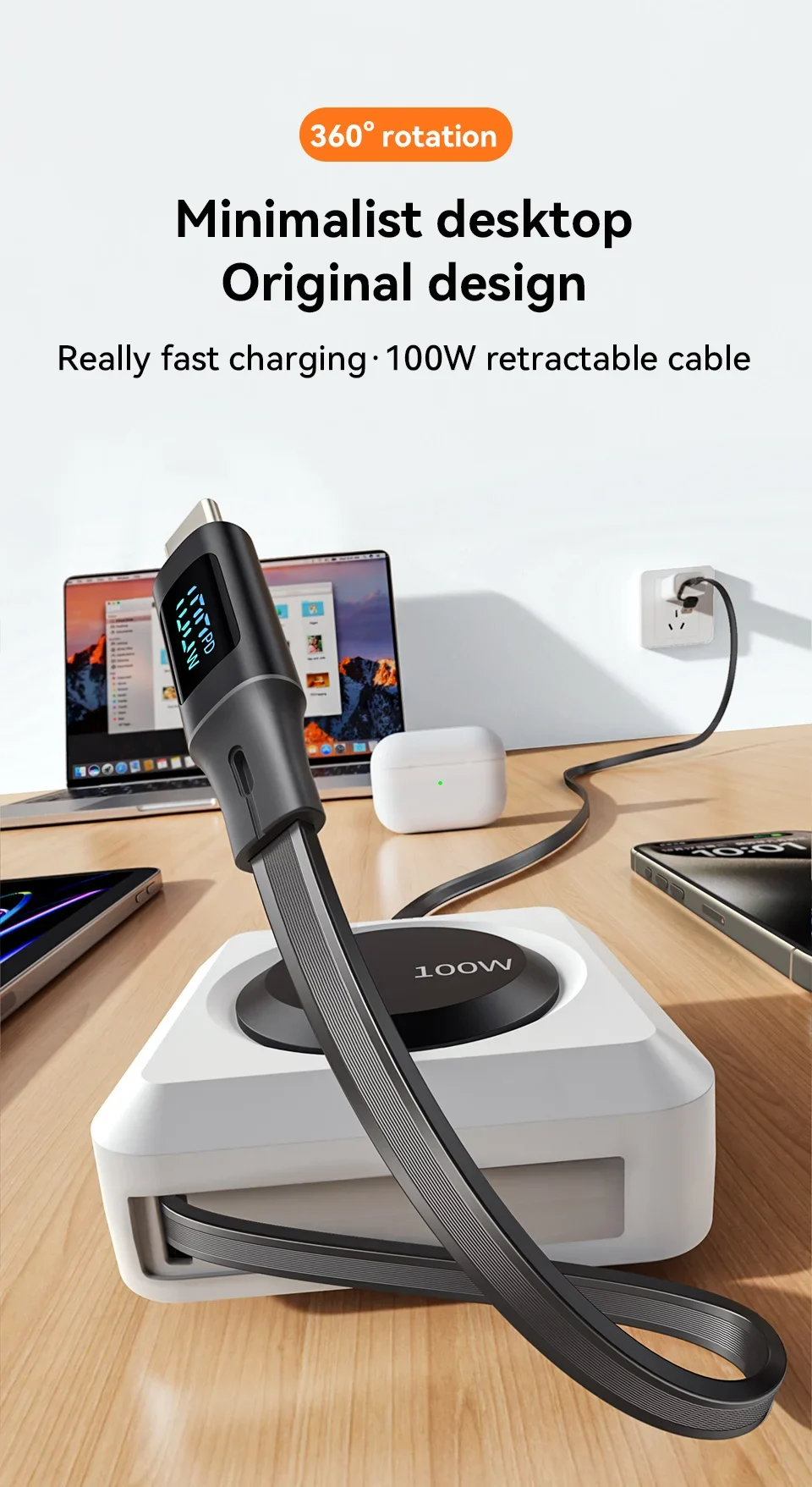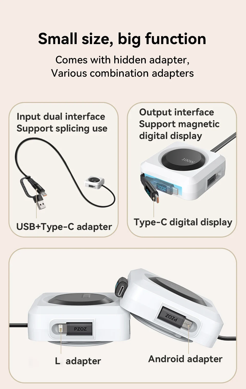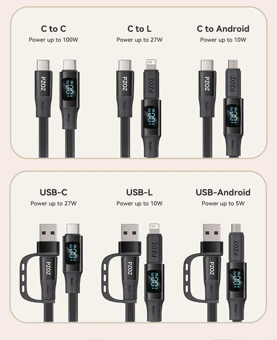 PZOZ Digital Display PD 100W C to C Retractable Cable USB to Type C Lightning Micro Fast Charging Cable Data Wire For iPhone 16