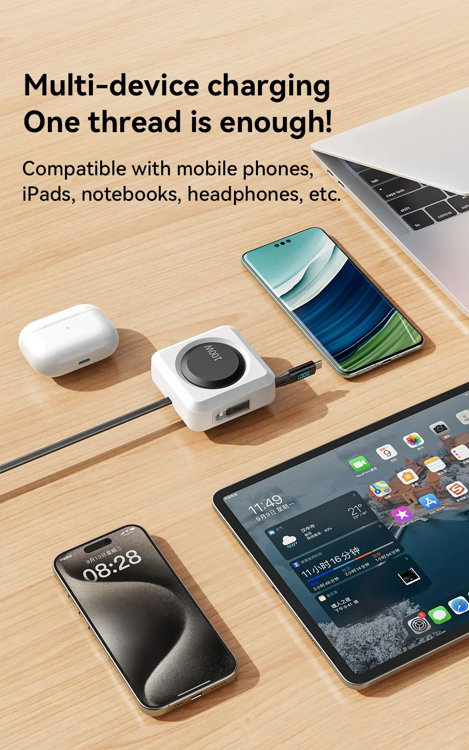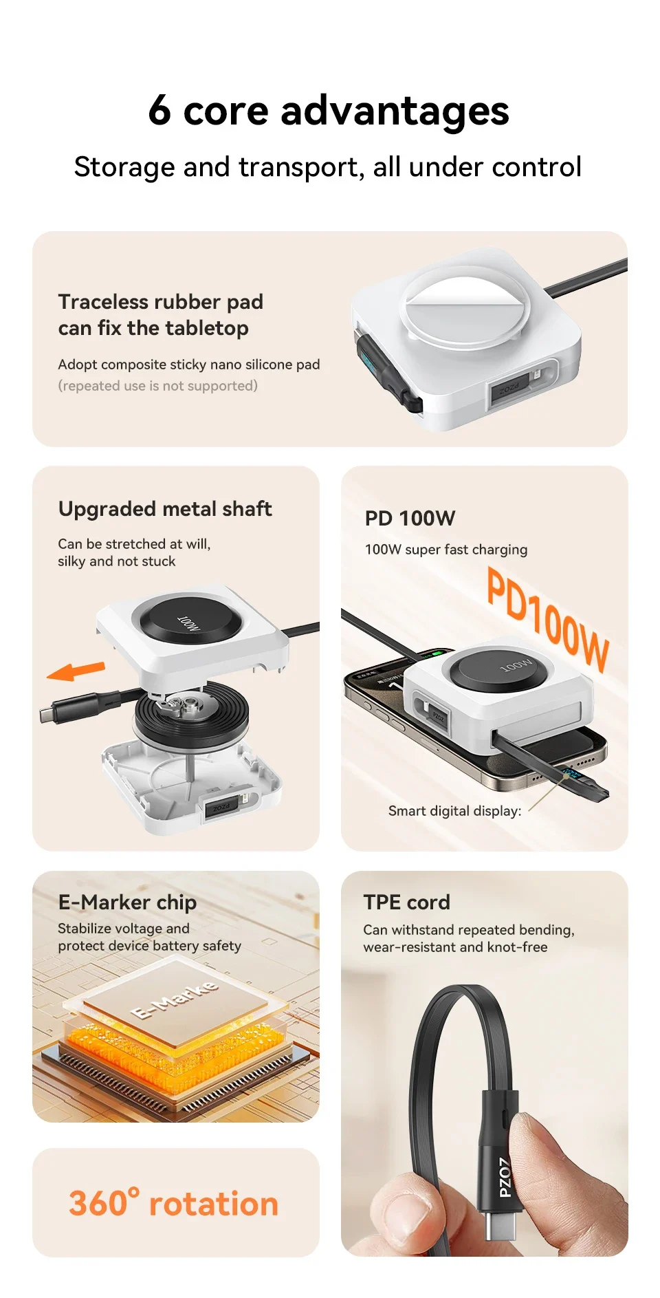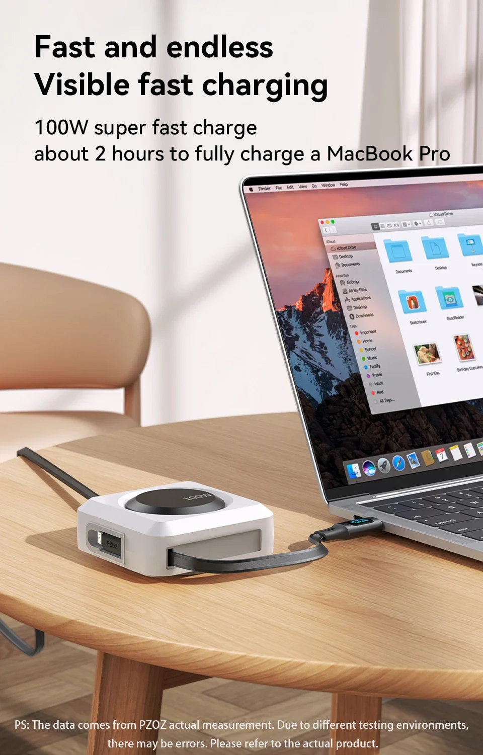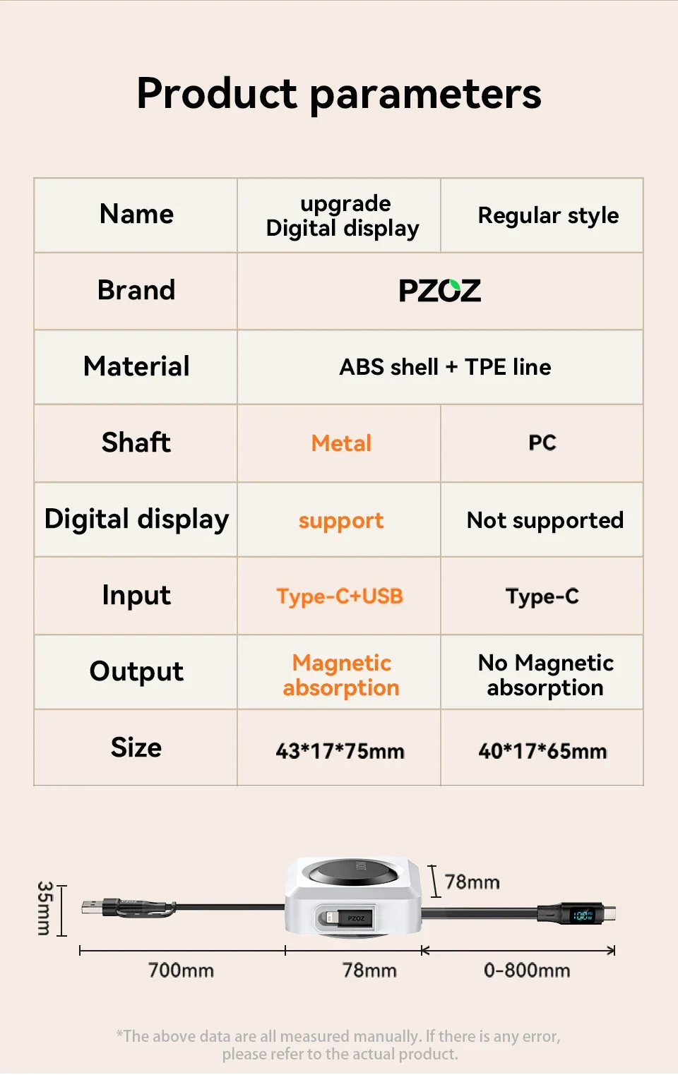 PZOZ Digital Display PD 100W C to C Retractable Cable USB to Type C Lightning Micro Fast Charging Cable Data Wire For iPhone 16