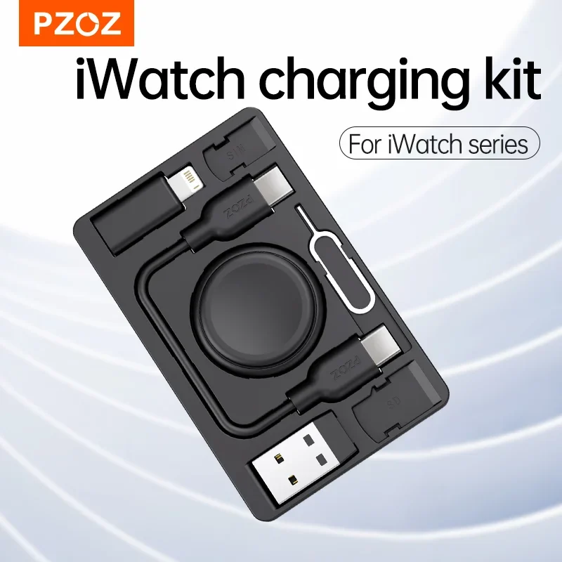 PZOZ For Apple Watch Charger iWatch Charging Portable Card Holder with USB C A to Lightning Type Cable SIM Adapter Storage