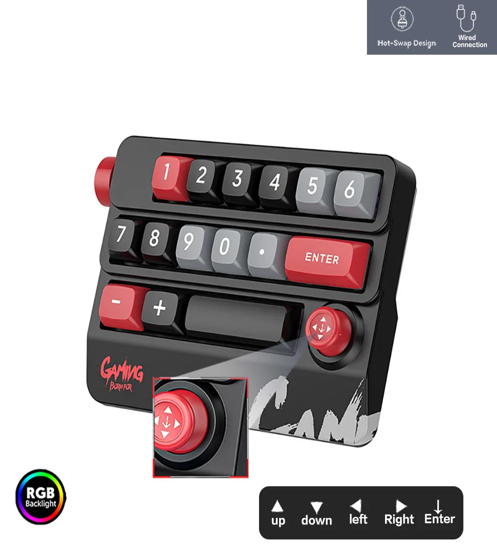 Aluminum Joystick Design Mechanical Number Keyboard,Full Key Hot Swappable Type-C RGB Backlight Wired Number Keyboard for Desktop