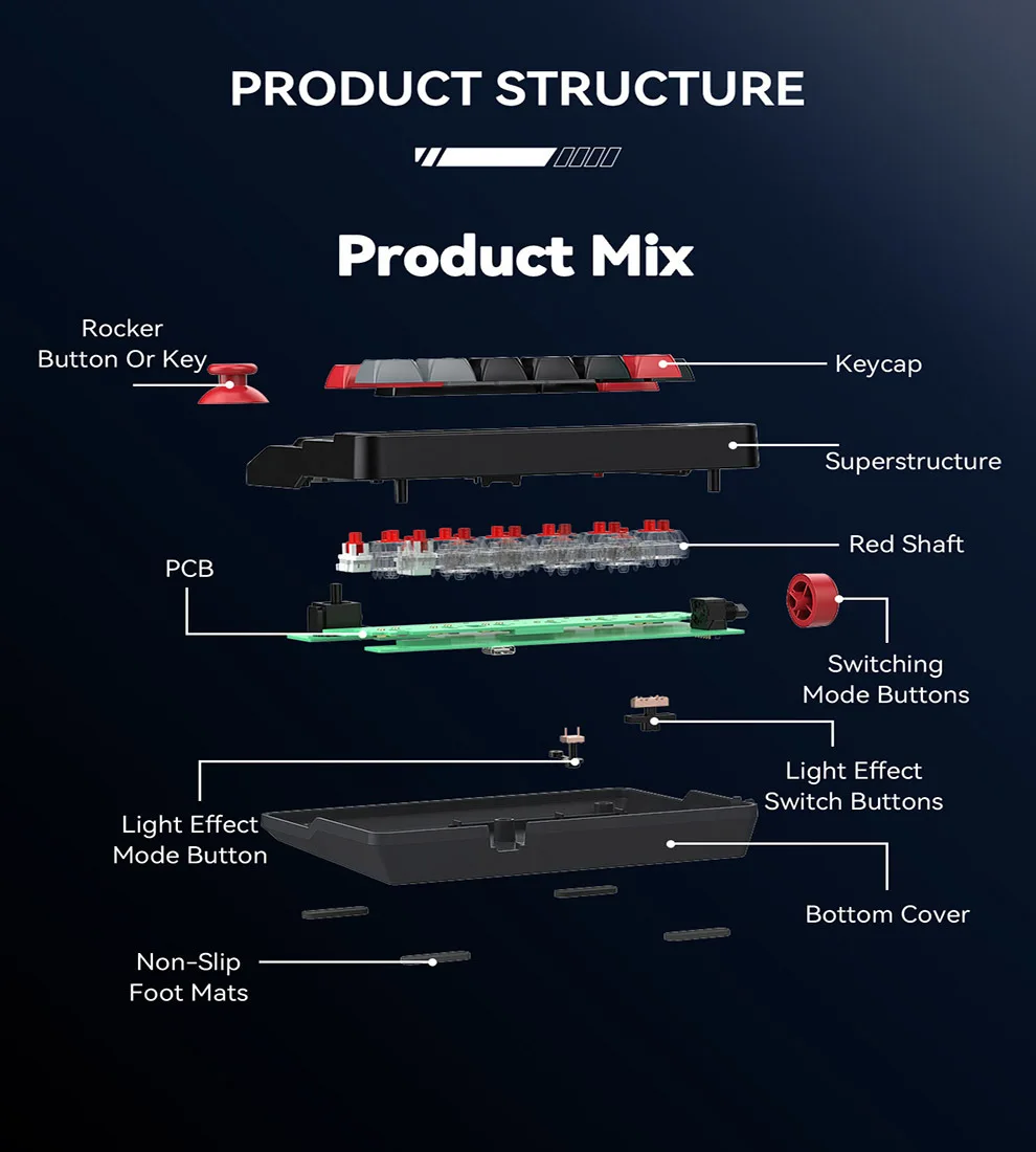 Millisecond response for all keys, ensuring that the keys are not covered when inputting multiple keys at the same time. The signal is processed in real time, making gaming and entertainment enjoyable.