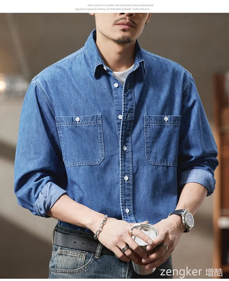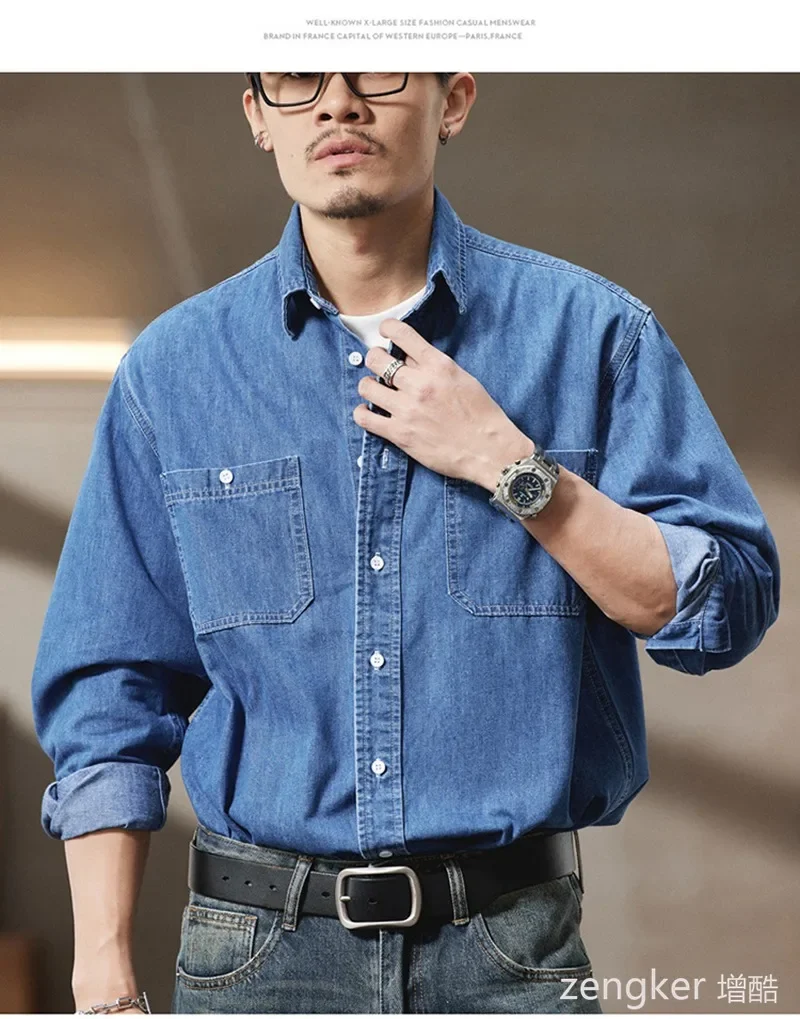 Spring New Arrival Men’s Big Size Denim Shirt Oversized Loose Fit Streetwear Style Jacket for Big Men Plus Size mens shirt