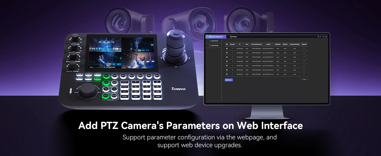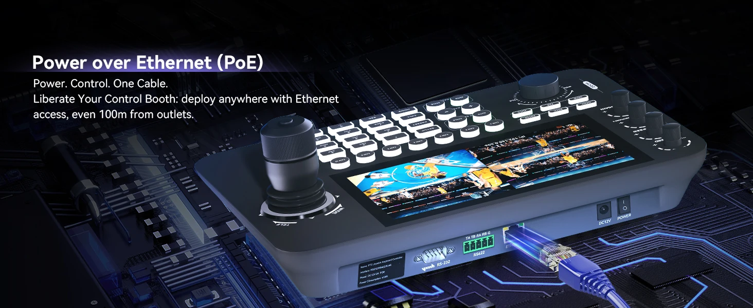 The upgraded KB200PRO PTZ Camera Joystick Controller offers multiple Connections, including RS422/RS485, RS232, and RJ45(Ethernet). And PoE supported, just one cable to connect to your LAN Port. The easy-to-use conference control keyboard makes setup a breeze, allowing you to quickly and easily configure your camera settings. This feature is especially useful for those who are new to live streaming or video conferencing.