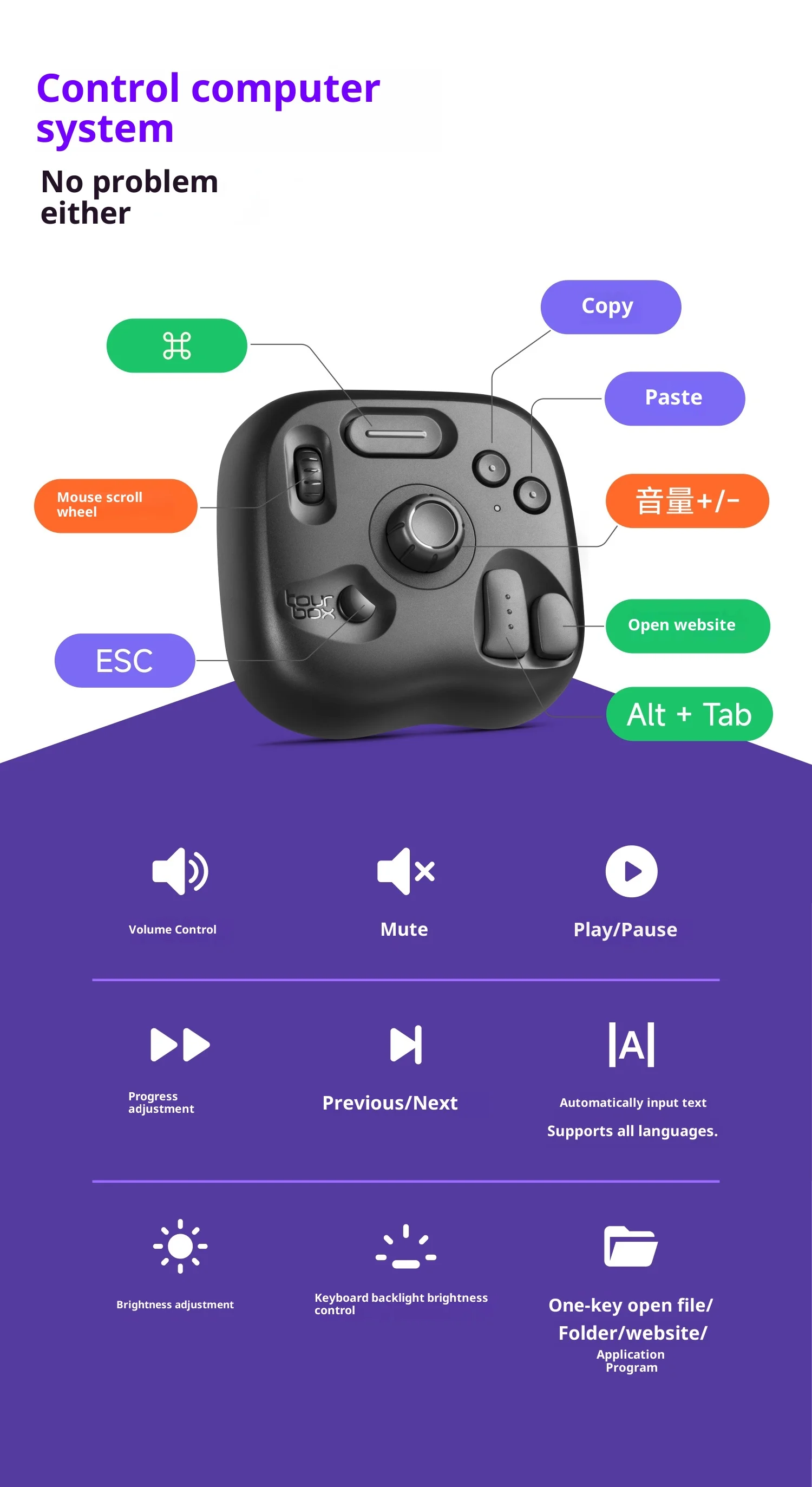System regional language support/TourBox Console (software): International universal version, supporting 10 regions and languages